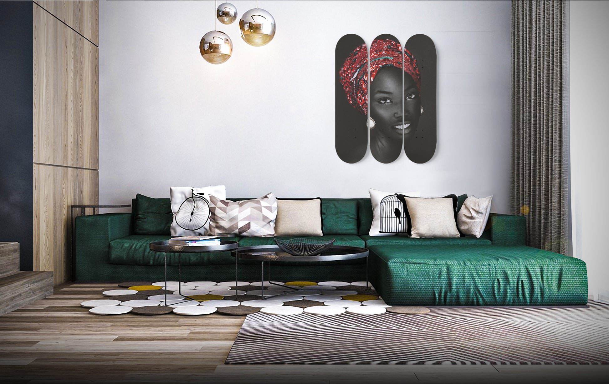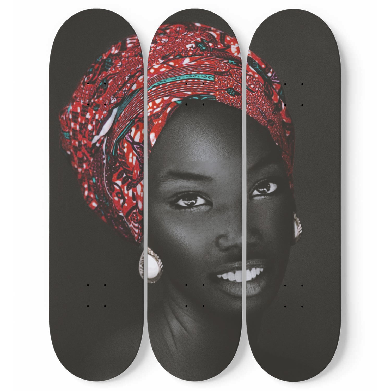 African Woman With Turban Wall Art | 3 - Piece Skate Deck Art, Ethnic Woman Pop Art, African Woman Prints, Housewarming Gift