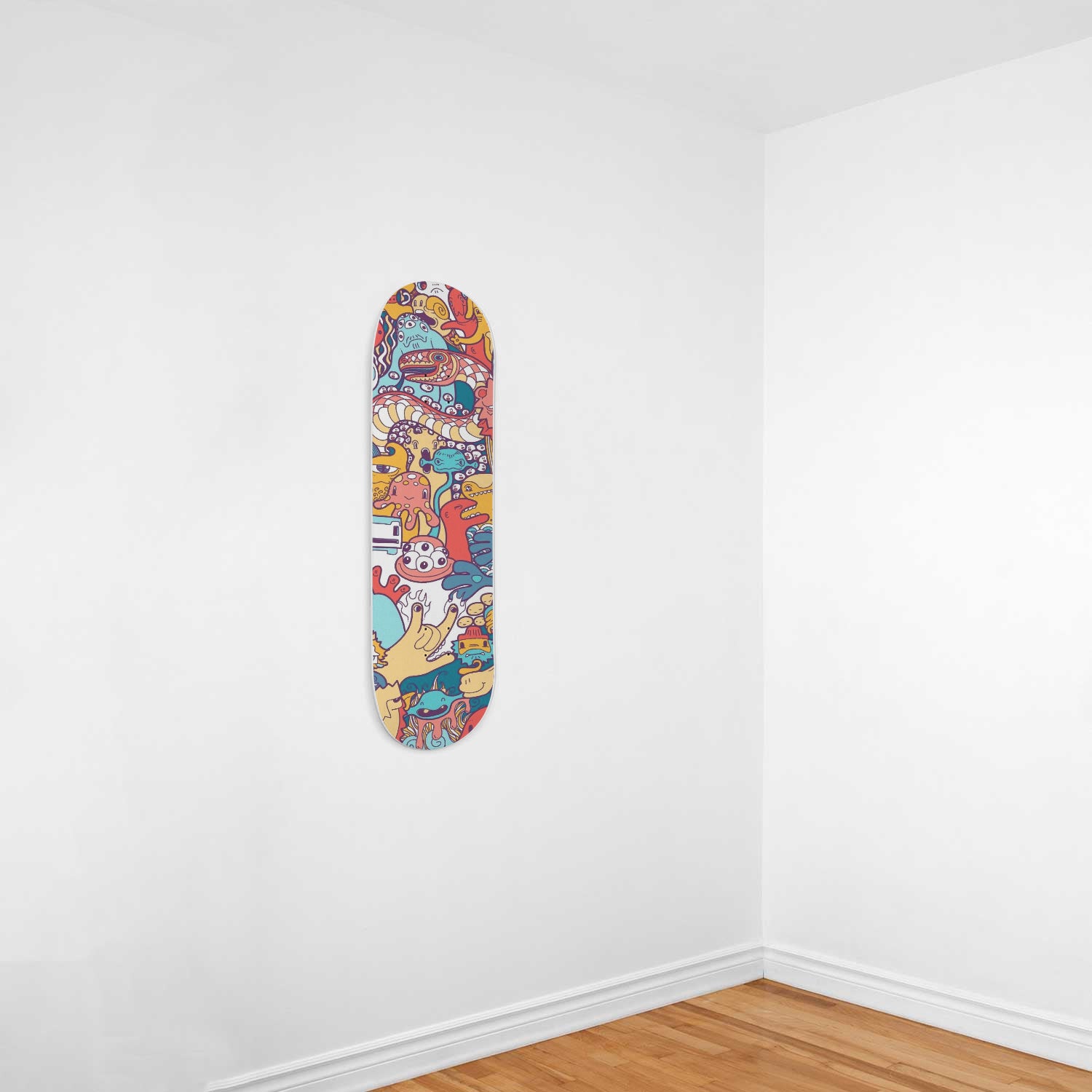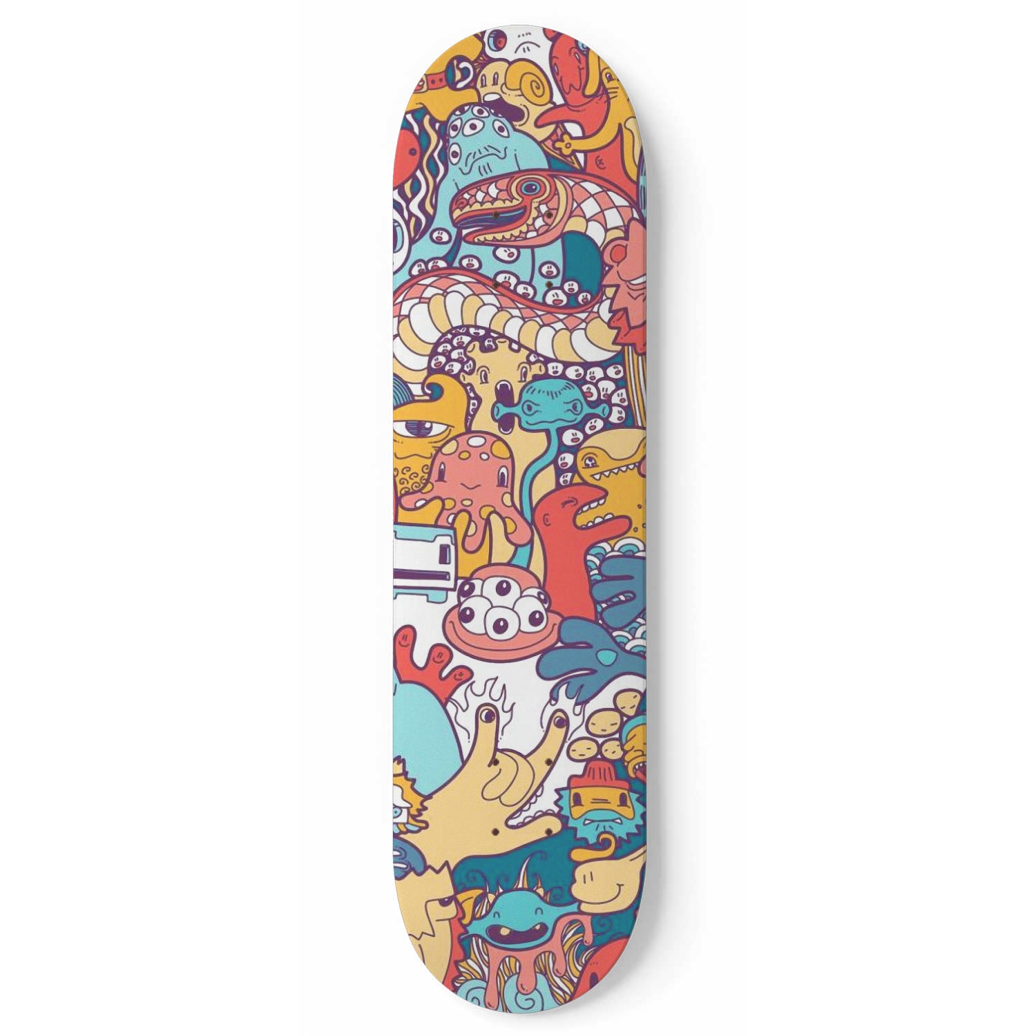 High-quality 7-ply 100% maple skateboard is the perfect statement piece for any home, office or man cave! Custom printed graphics, unique art piece.