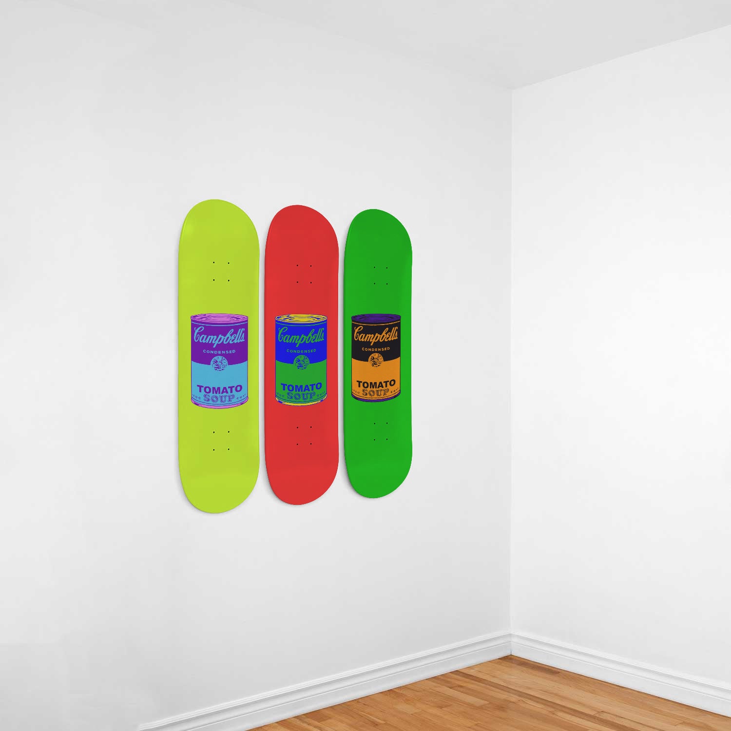Andy Warhol Inspired - Campbell Soup | Lemon, Red & Green - 3-piece Skateboard Wall Art | Aesthetic Vintage Style Wall Art | Inspired Art