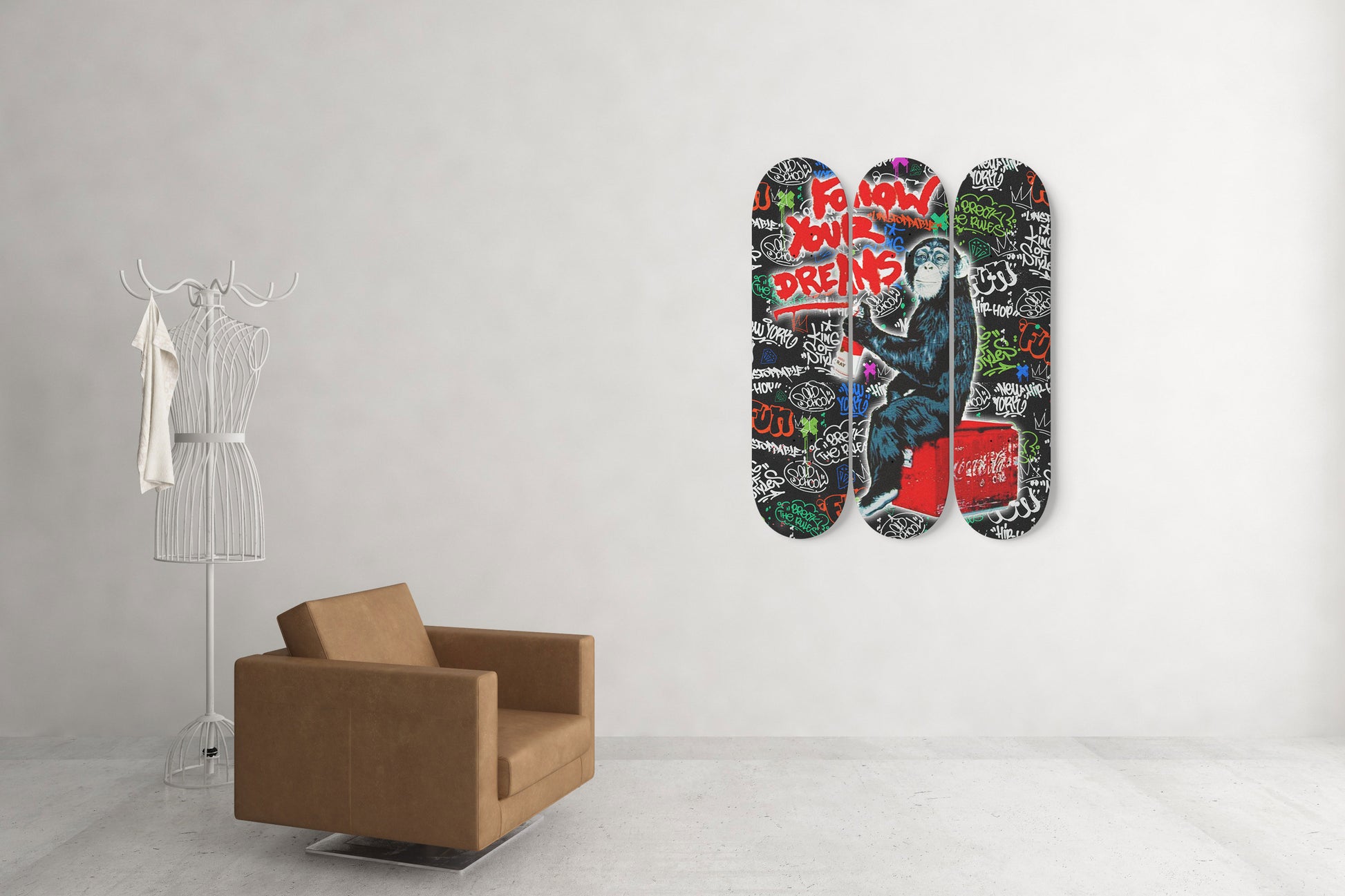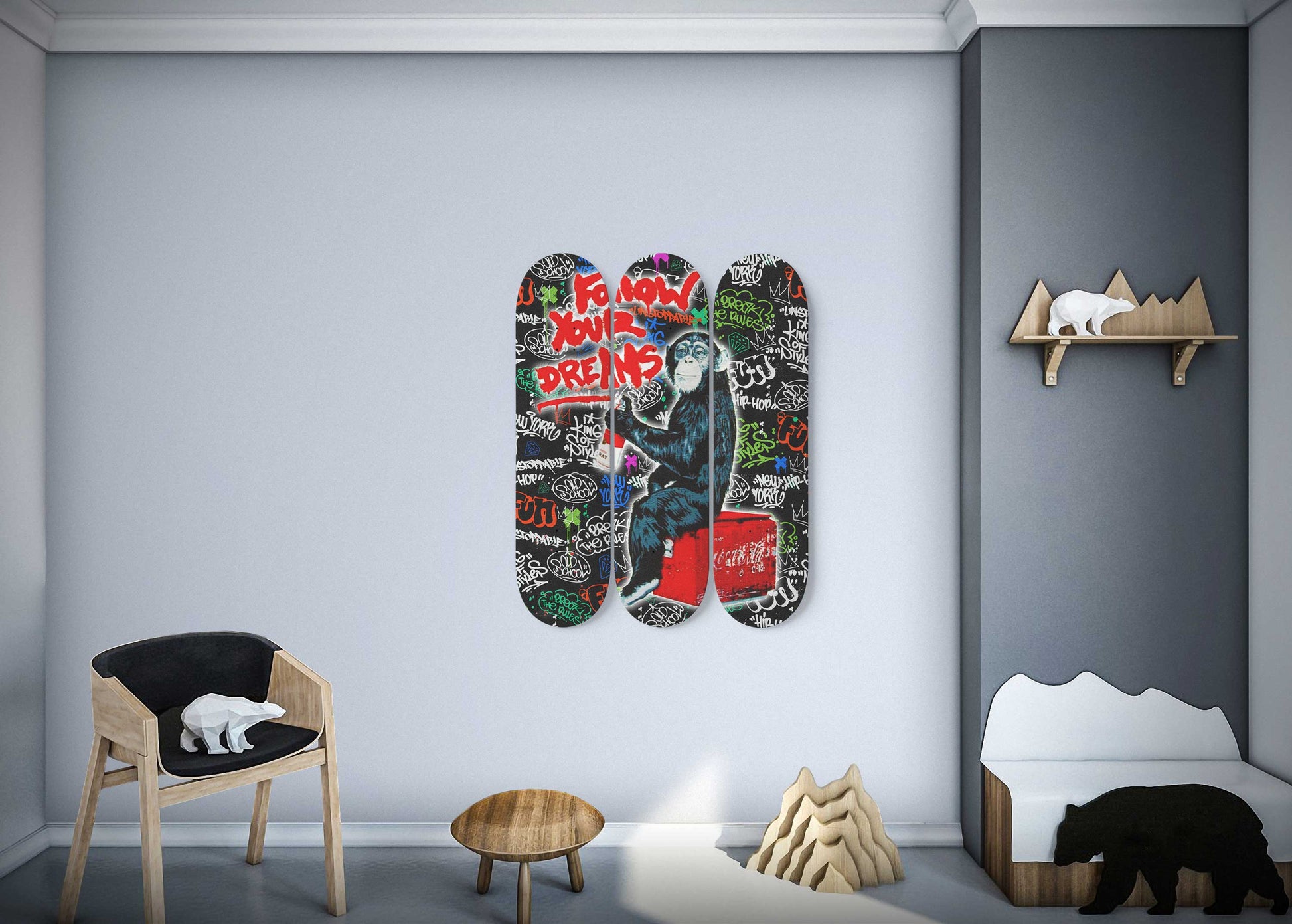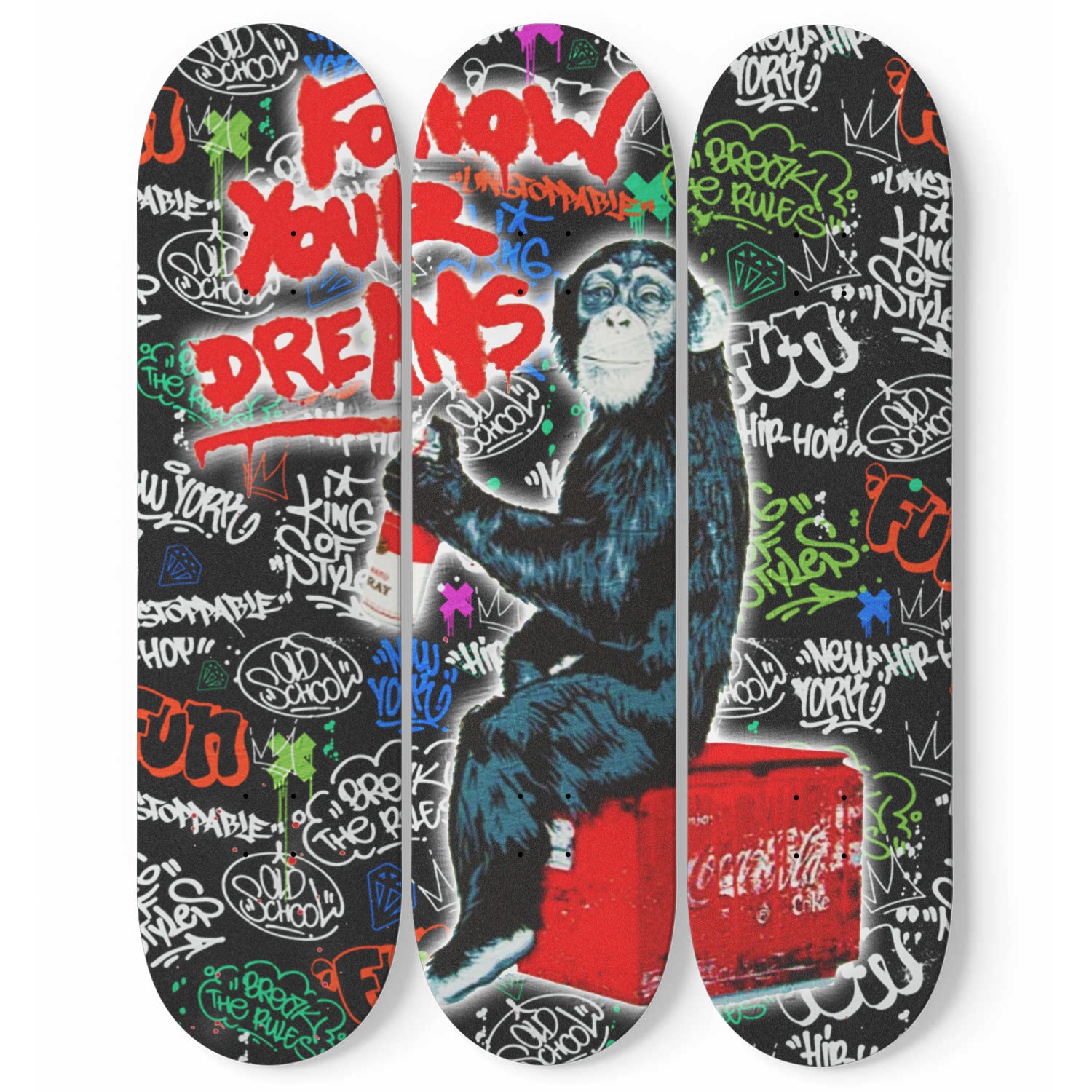 Banksy Follow Your Dreams Graffiti Skateboard Wall Art Gallery wrapped Maple Wood Ready To Hang
