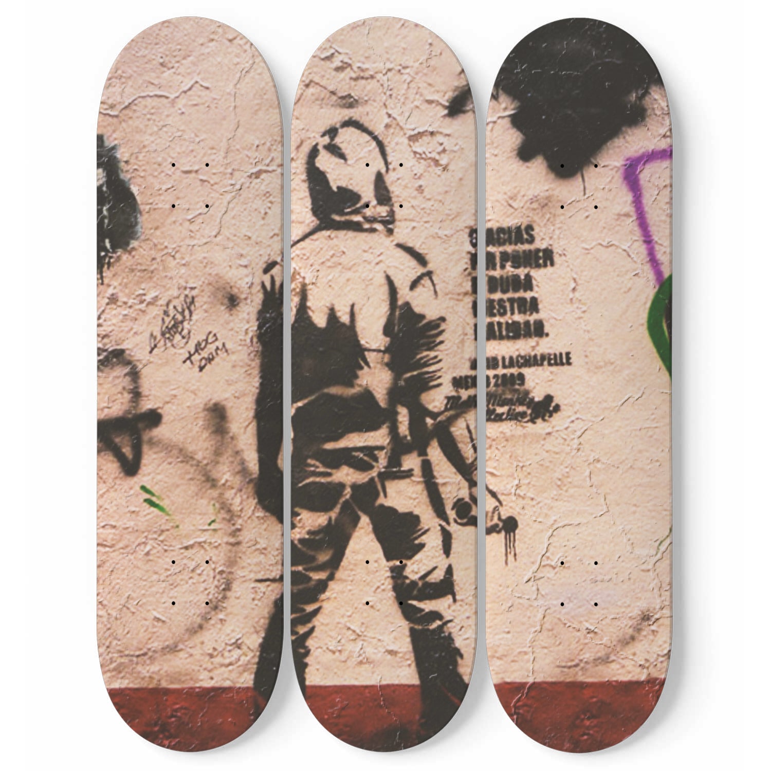 Banksy Spray Paint Street Art | 3 - Set Skateboard Wall Art, Banksy Graffiti Artwork, Living Room Wall Decor