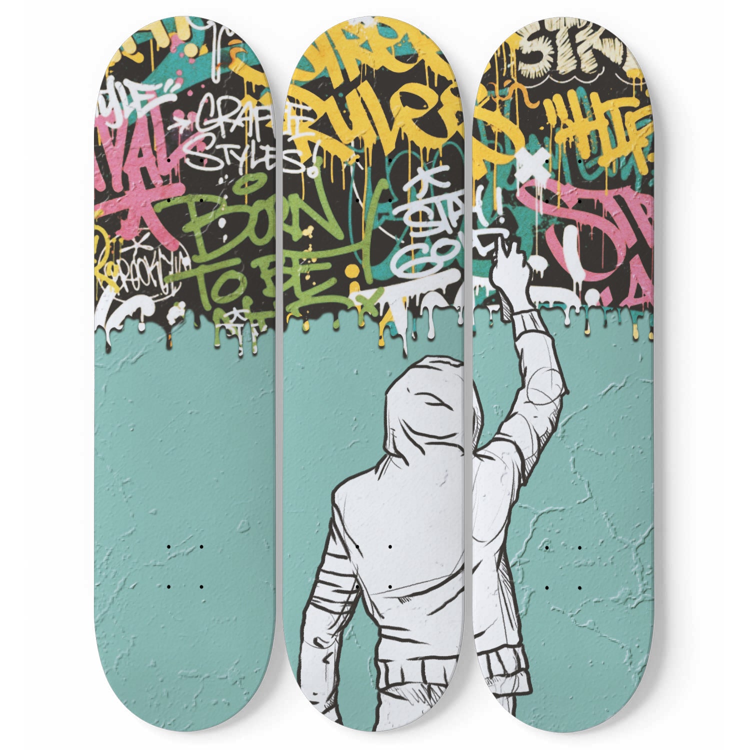 Banksy Street Graffiti Art | 3 - Set Skate Deck Art, Pro - Grade Maple Wood Mount Wall Hanging, Martin Watson Artwork, Home Wall Decor