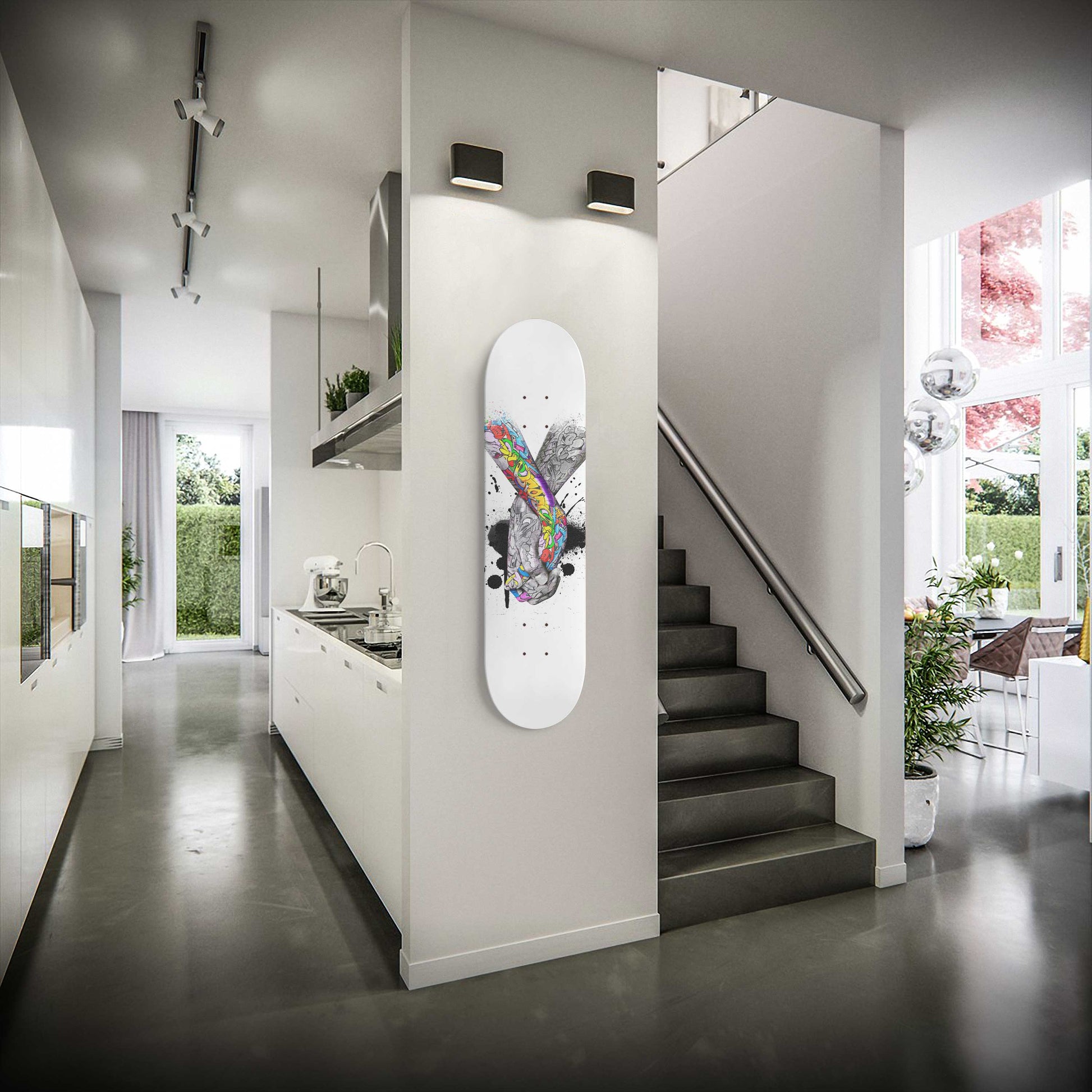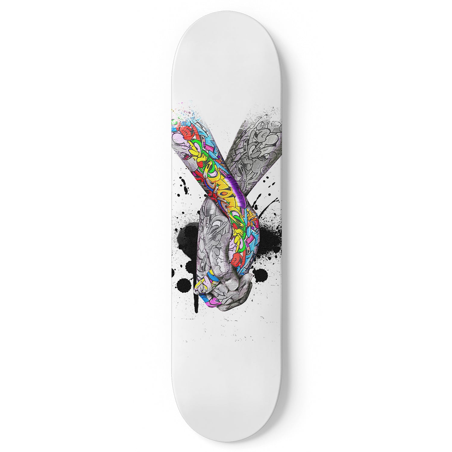 High-quality 7-ply 100% maple skateboard is the perfect statement piece for any home, office, or man cave! Custom printed graphics, unique art piece.