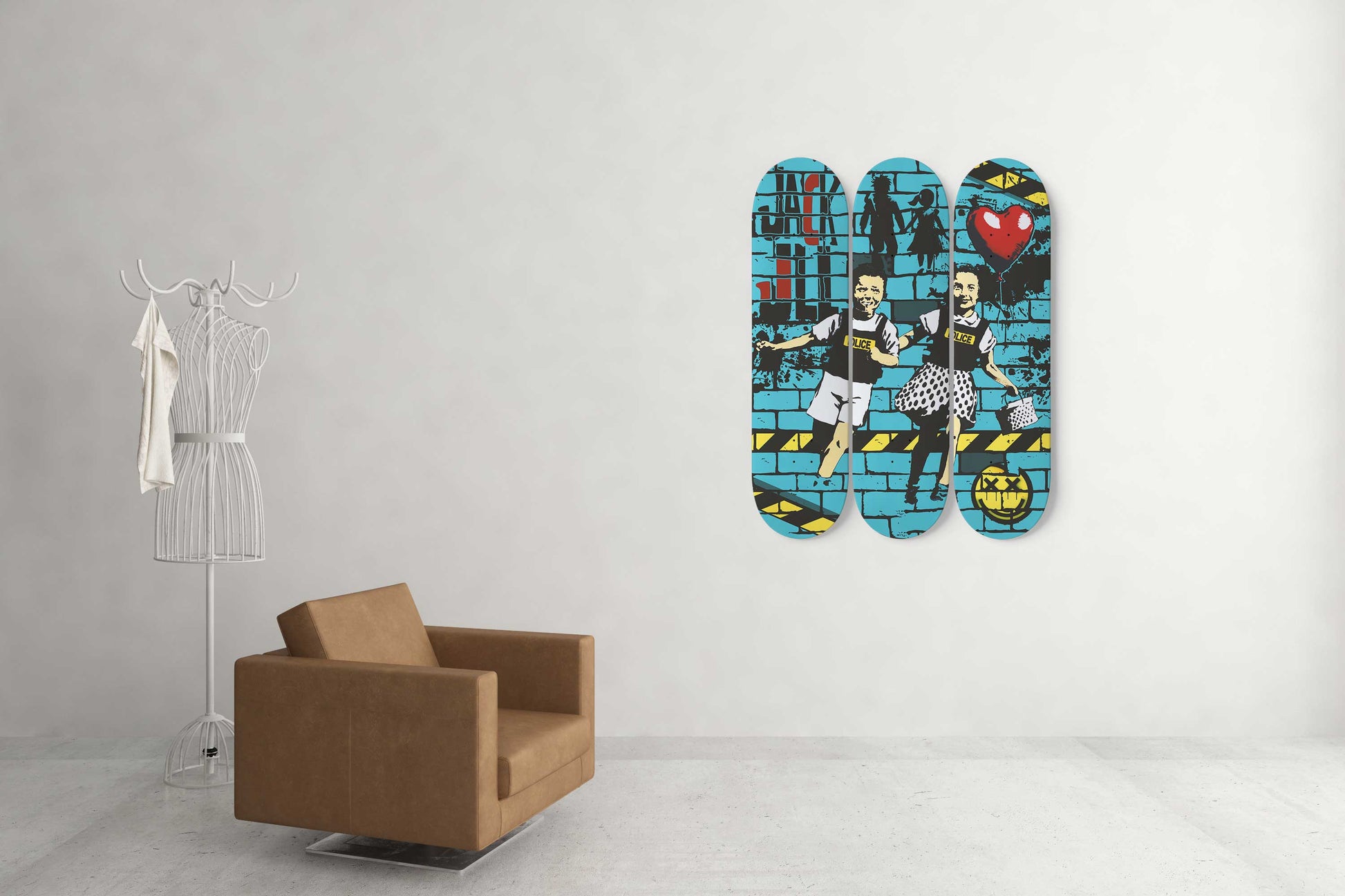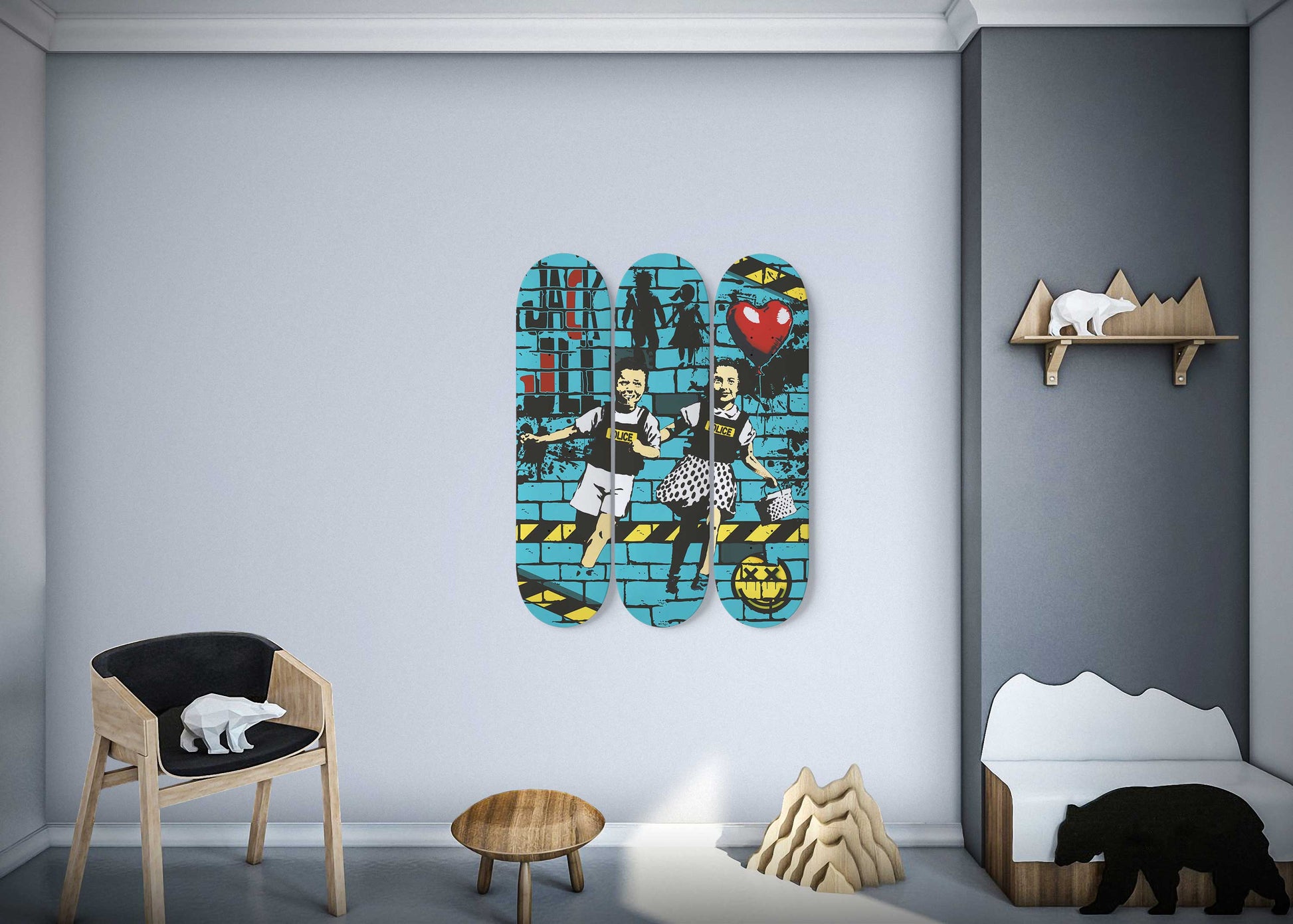 Banksy Jack and Jill 3 Deck Skateboard Wall Art: Urban Satire on the Move