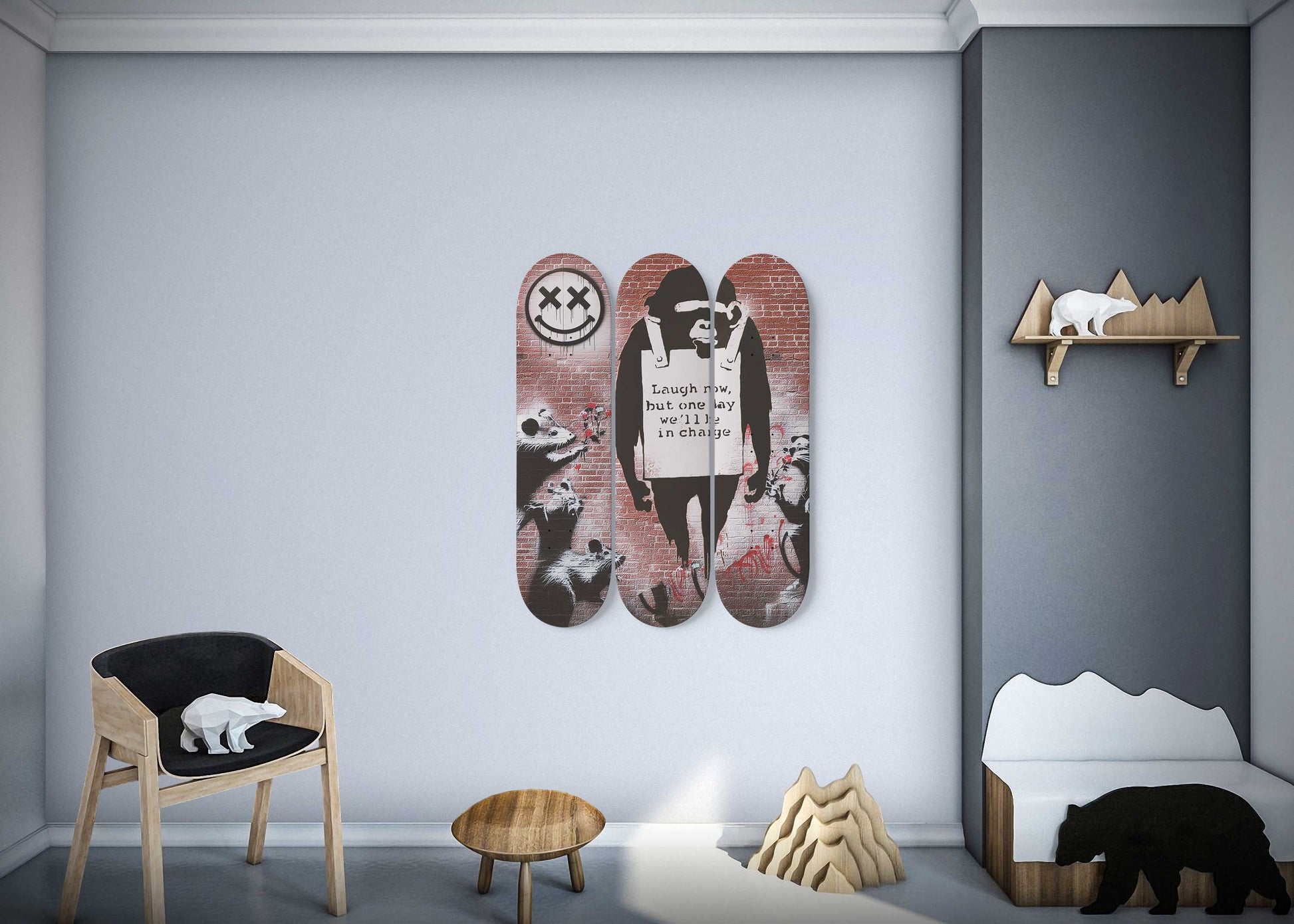 Banksy Laugh Now 3 Deck Skateboard Wall Art: Masterpiece,Beautiful Design