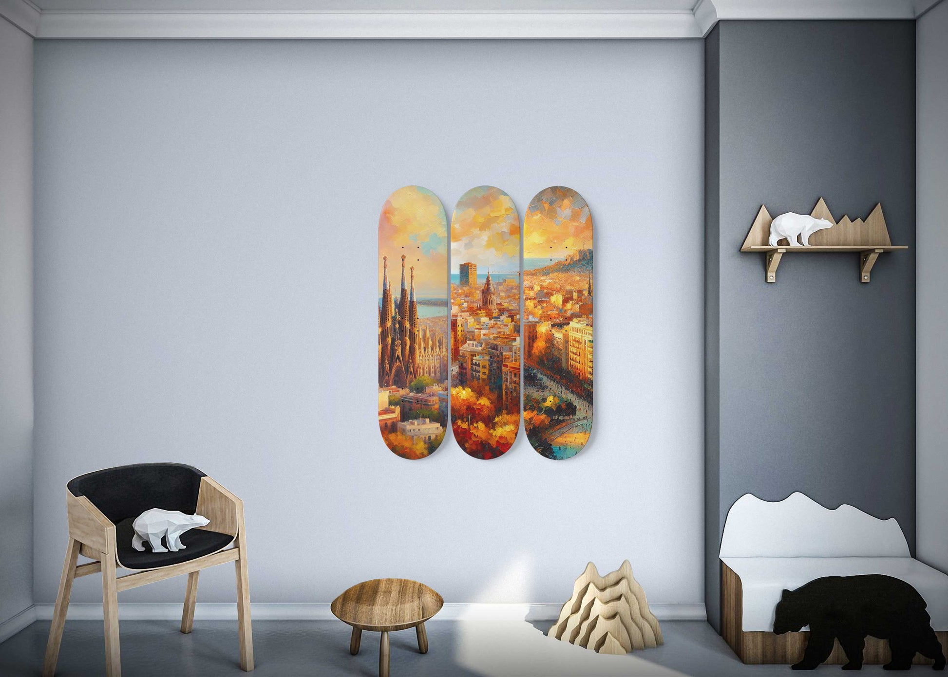 Barcelona Cityscaper 3-Deck Skateboard Wall Art