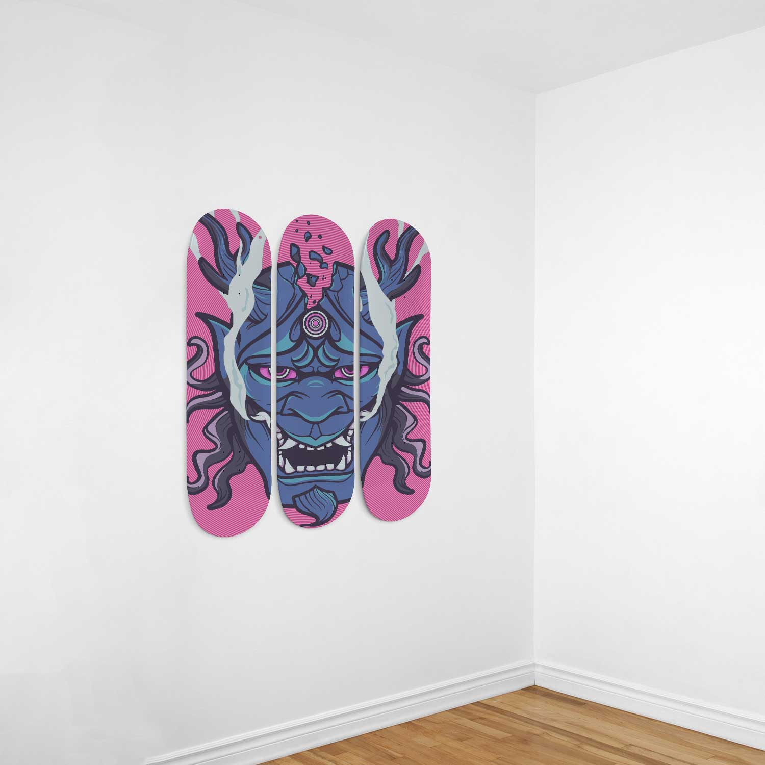 Immerse yourself in the world of Japanese martial arts with our Japanese Mask Warrior 3 Deck Skateboard Wall Art. This isn't just wall decor; it's a captivating fusion of artistry and urban escapism, making it the ideal addition to your urban decor.