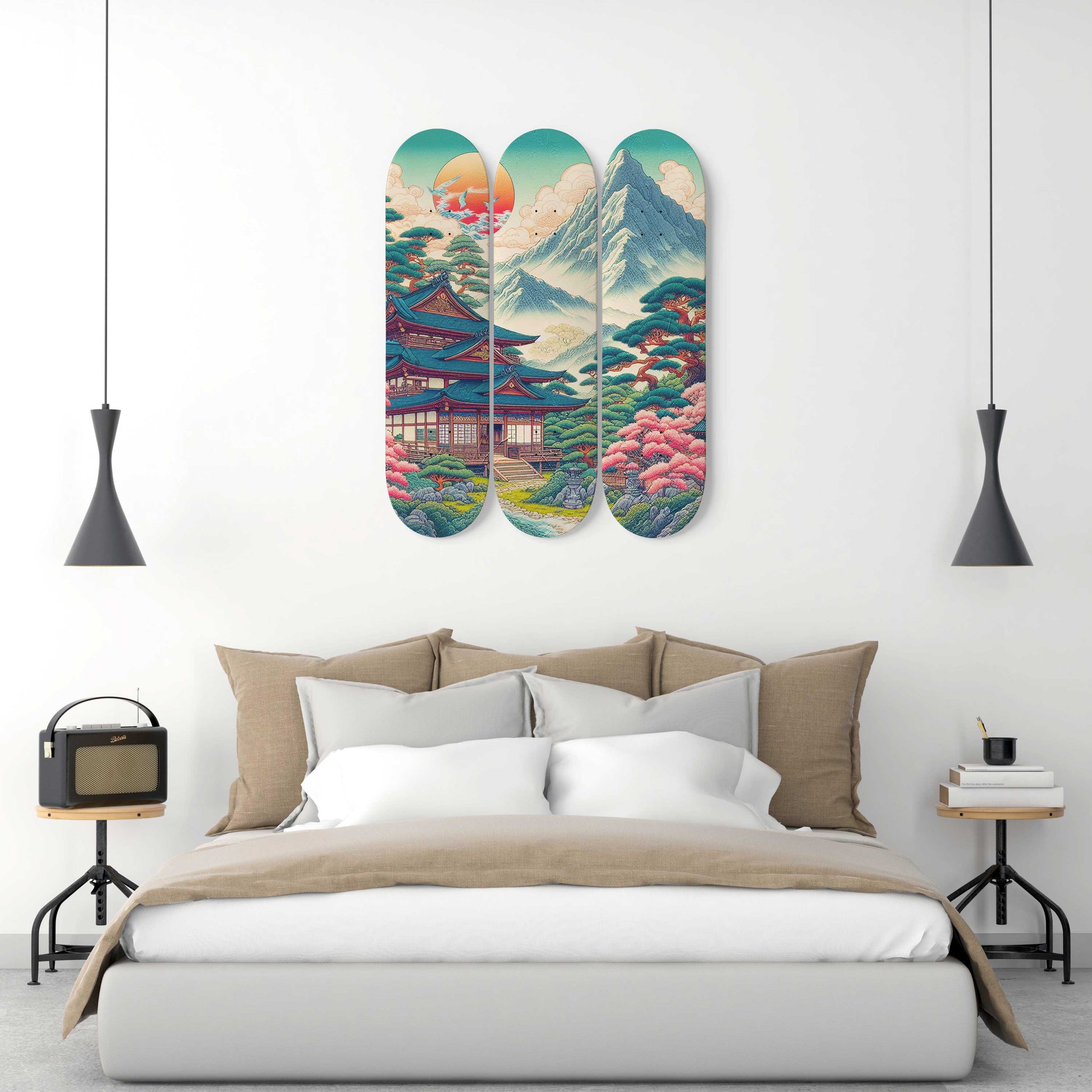 Discover the captivating harmony between Japanese heritage and contemporary artistry with our exceptional collection of skateboard deck wall art. Each piece intricately blends traditional Japanese elements with the urban edge of skate culture, resulting in visually stunning and culturally rich decor.