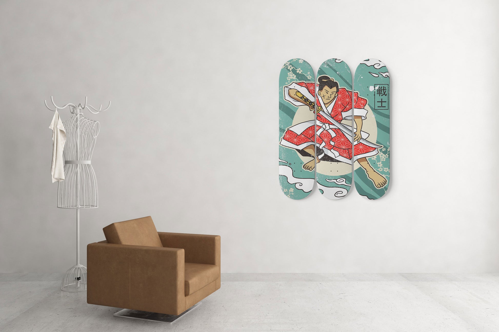 Katana Warrior 3-Deck Skateboard Wall Art: Samurai Mastery