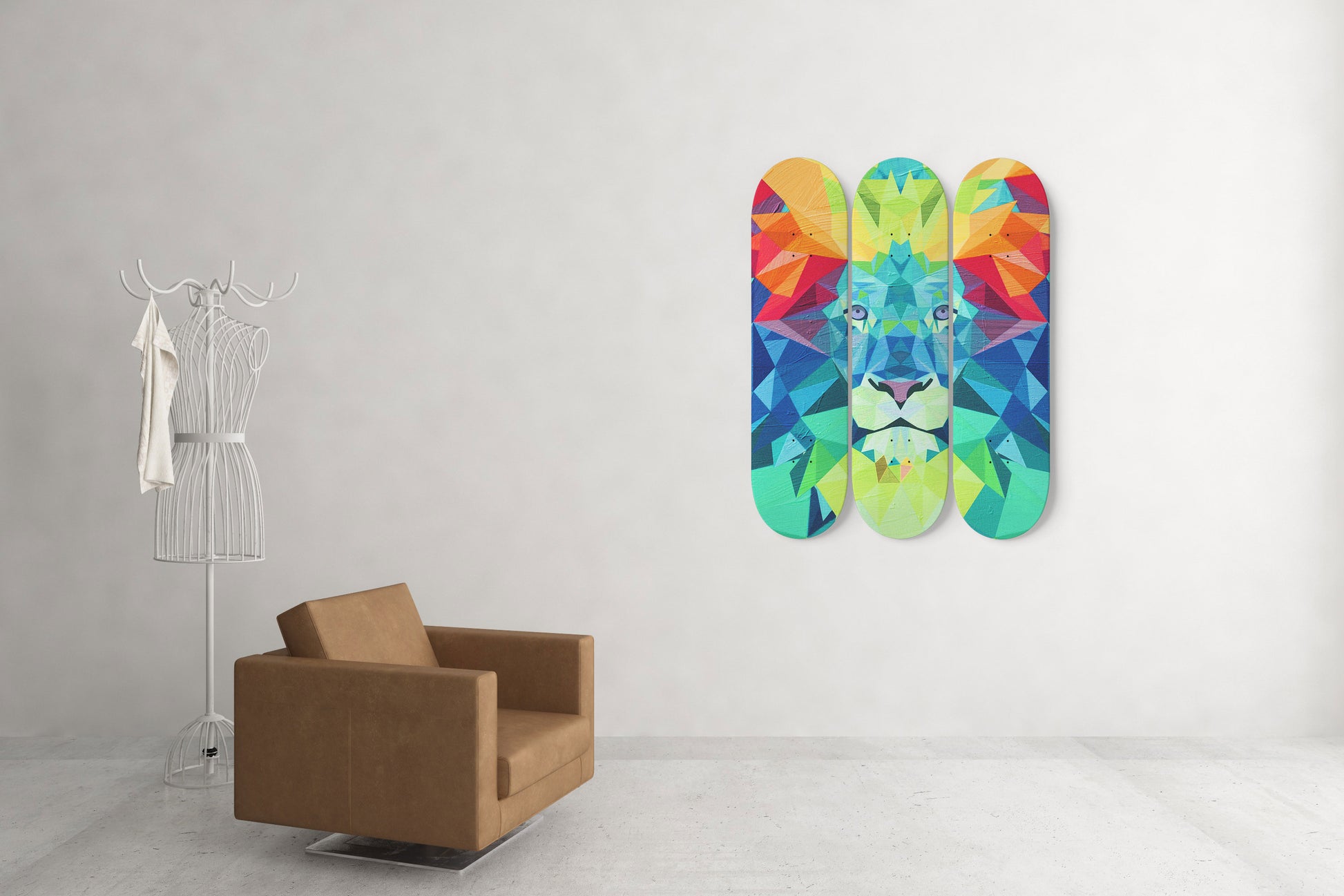 Lion Pride #5.0 3-Deck Skateboard Wall Art: Vibrant, Colorful Design