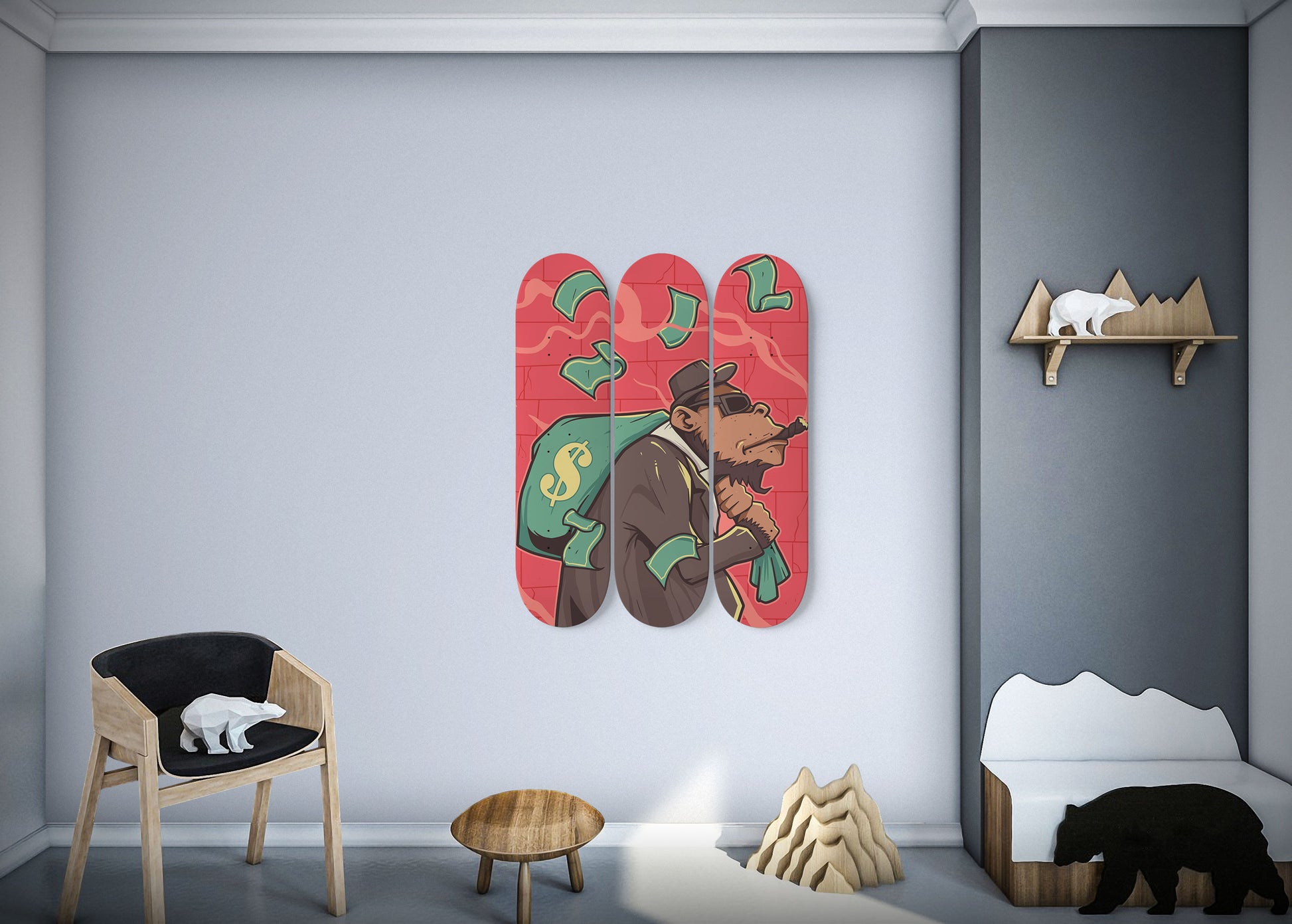 Money Hustle 3-Deck Skateboard Wall Art: Wealth on Wheels