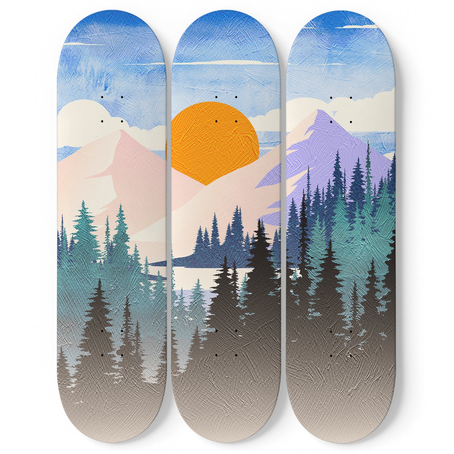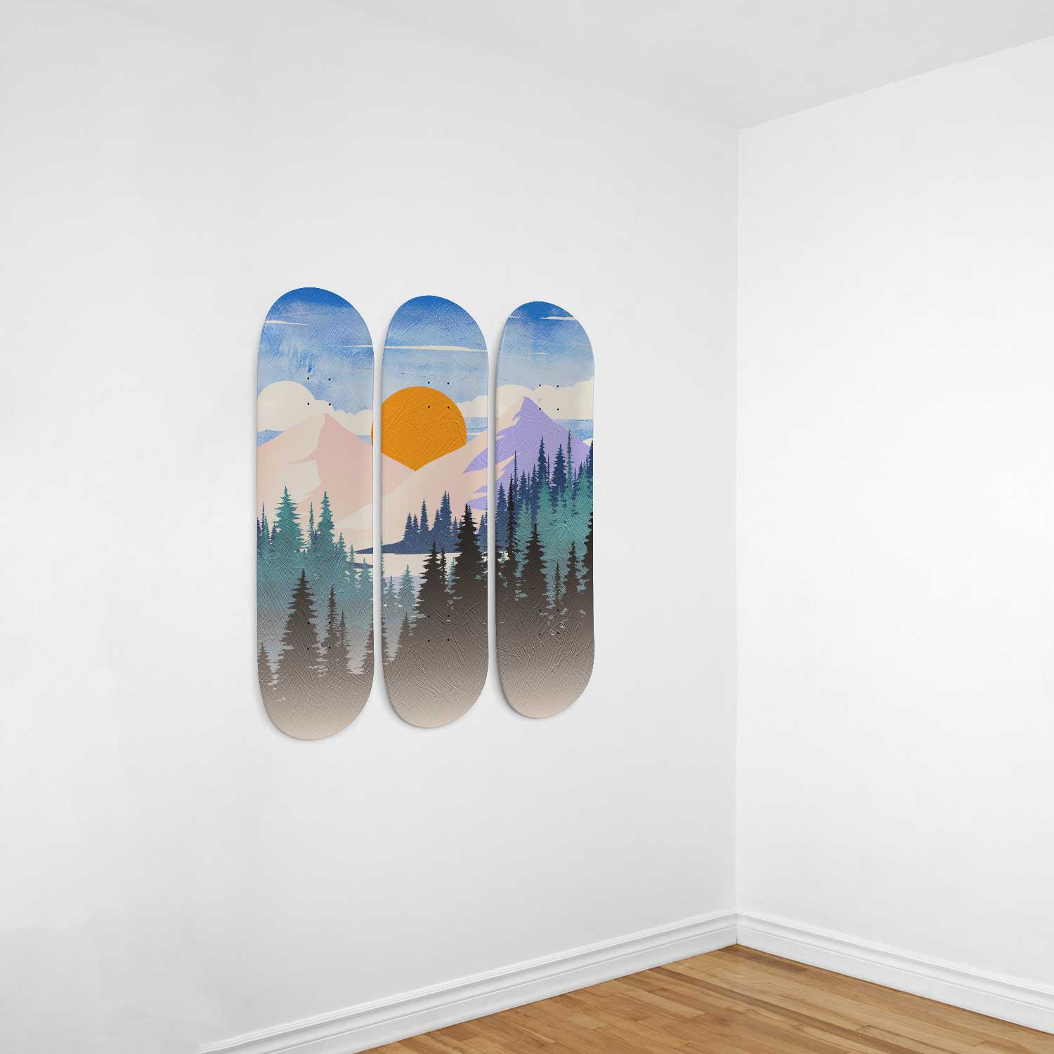 Mountain Sunset #2.0 3-Deck Skateboard Wall Art