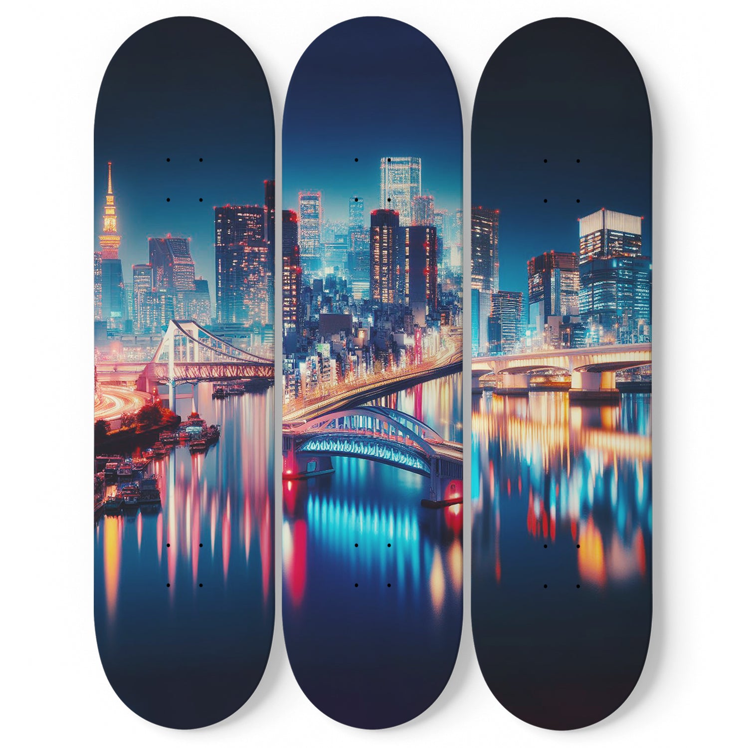 Tokyo At Night Cityscaper 3-Deck Skateboard Wall Art