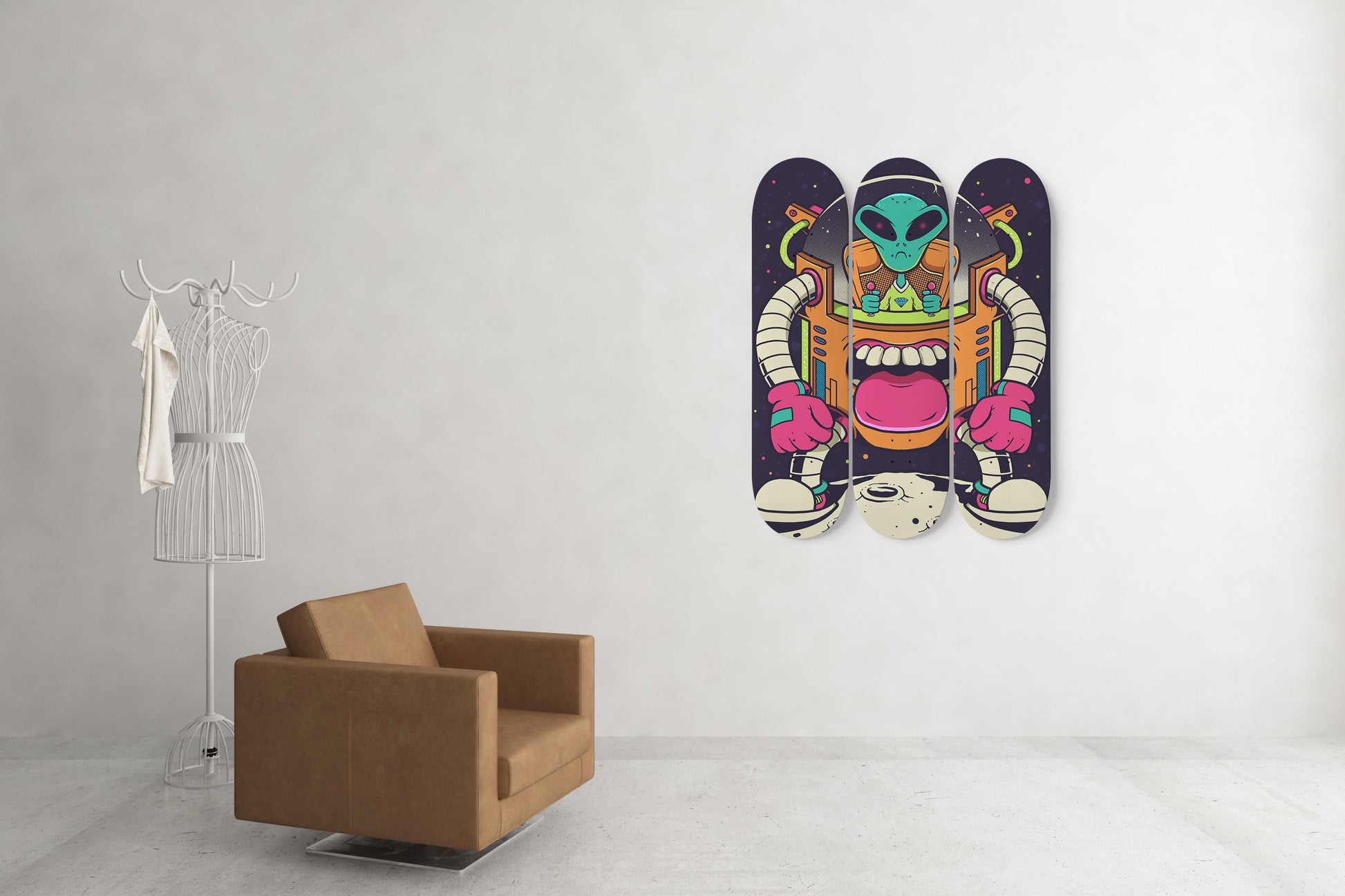 Space Warrior 3-Deck Skateboard Wall Art: Galactic Design