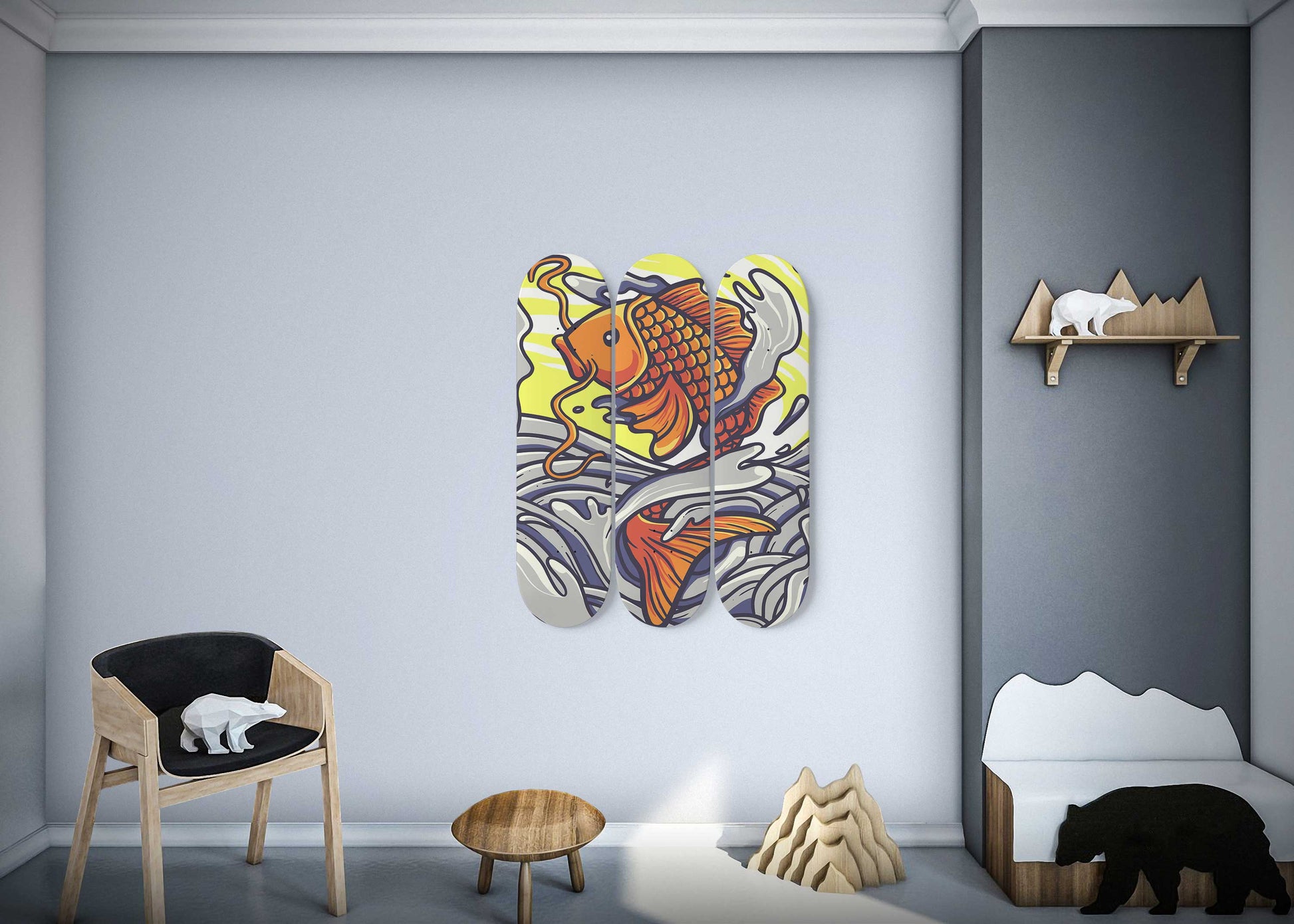 The Golden Fortune 3 Deck Skateboard Wall Art