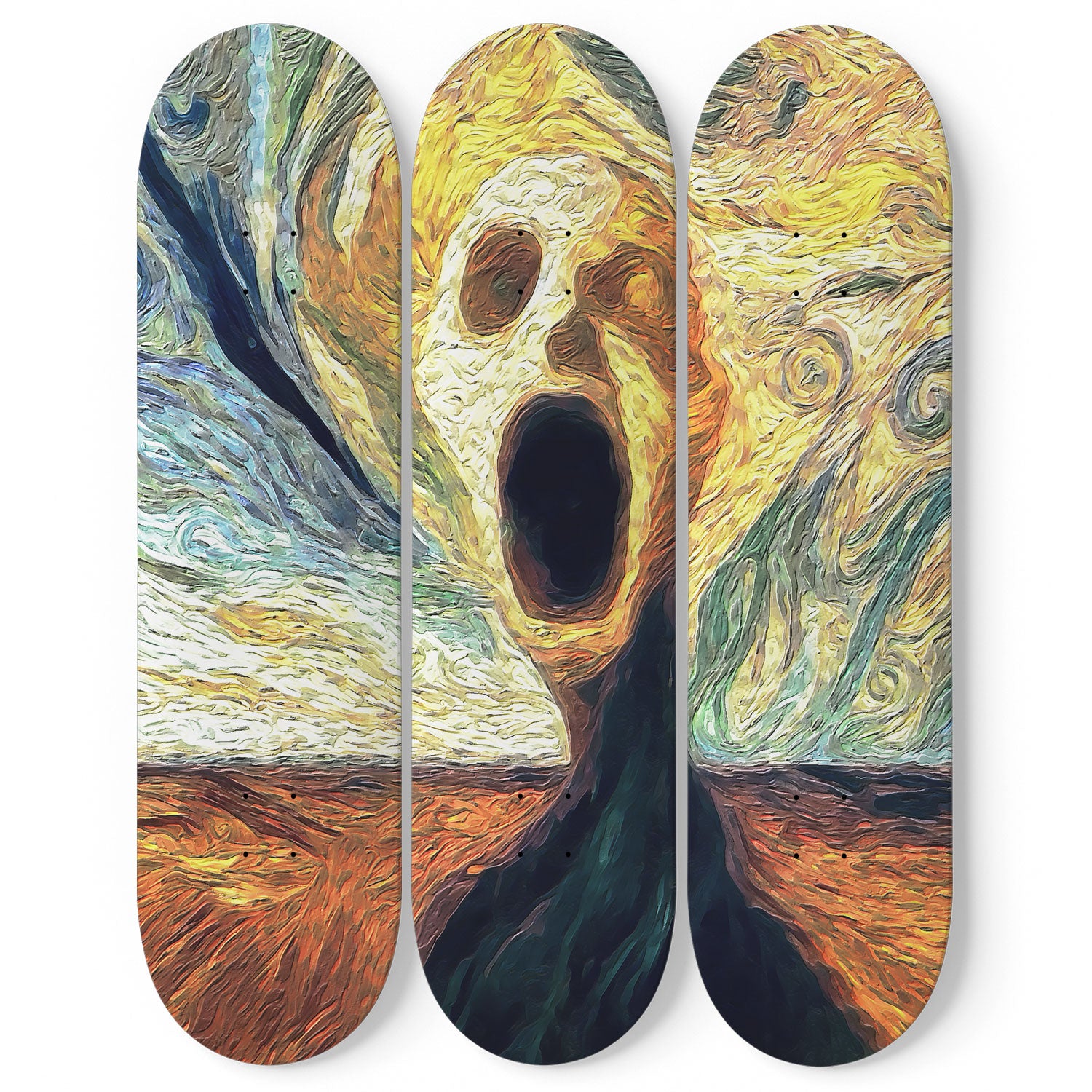Van Gogh Echo 3-Deck Skateboard Wall Art: Masterpiece in Motion