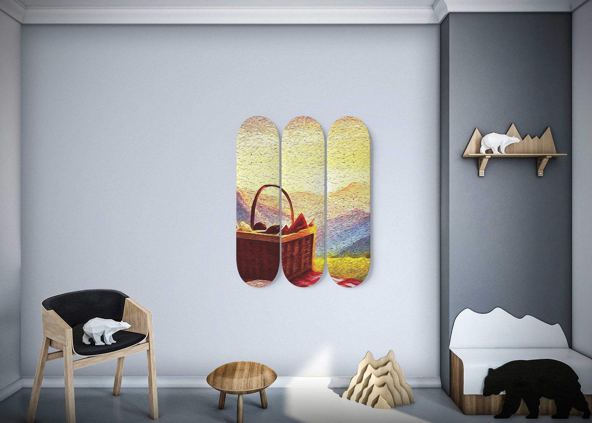 Van Gogh Basket and Sunset 3-Deck Skateboard Wall Art: A Brush with Nature