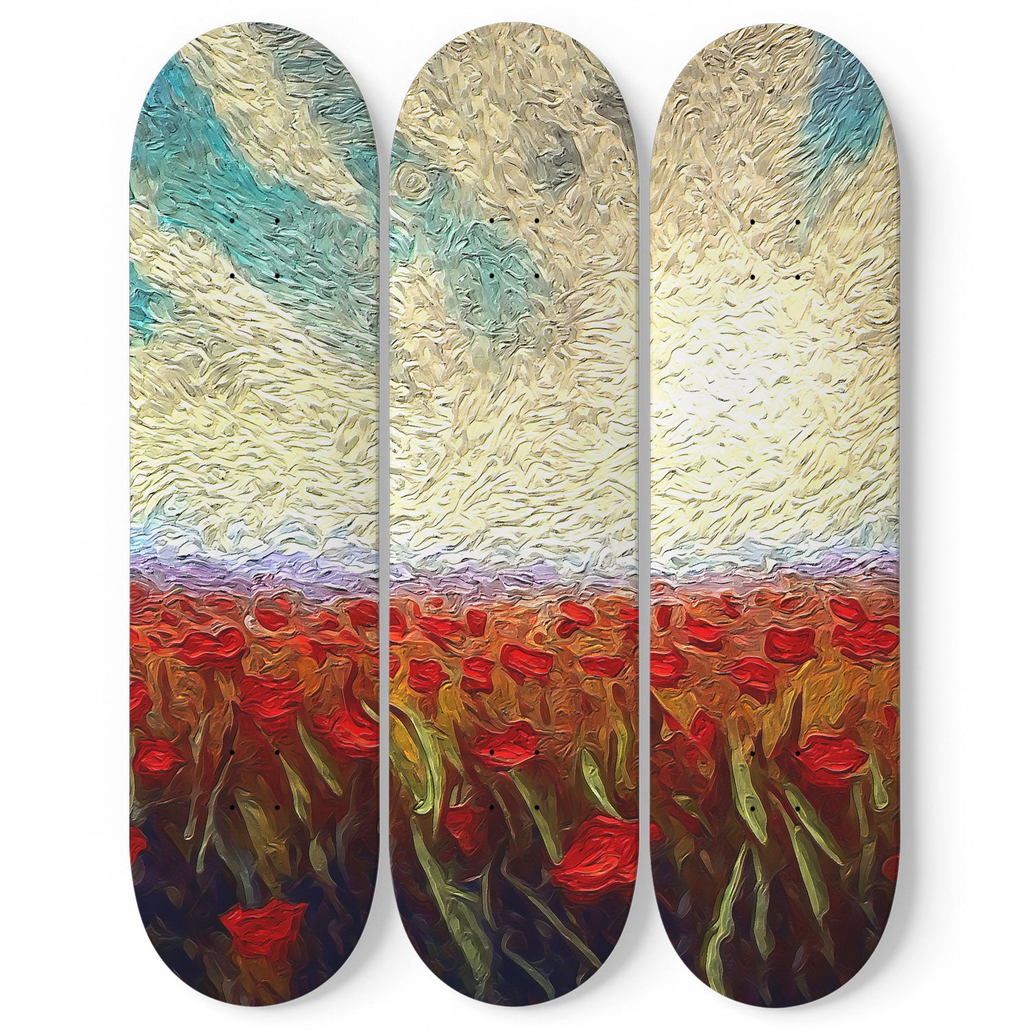 Van Gogh Field of Flowers 3-Deck Skateboard Wall Art: Floral Masterpiece