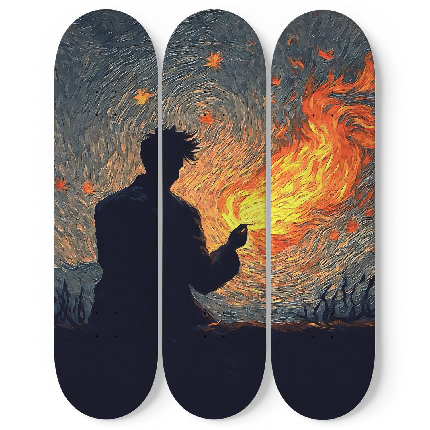 Van Gogh Night Chillin 3-Deck Skateboard Wall Art