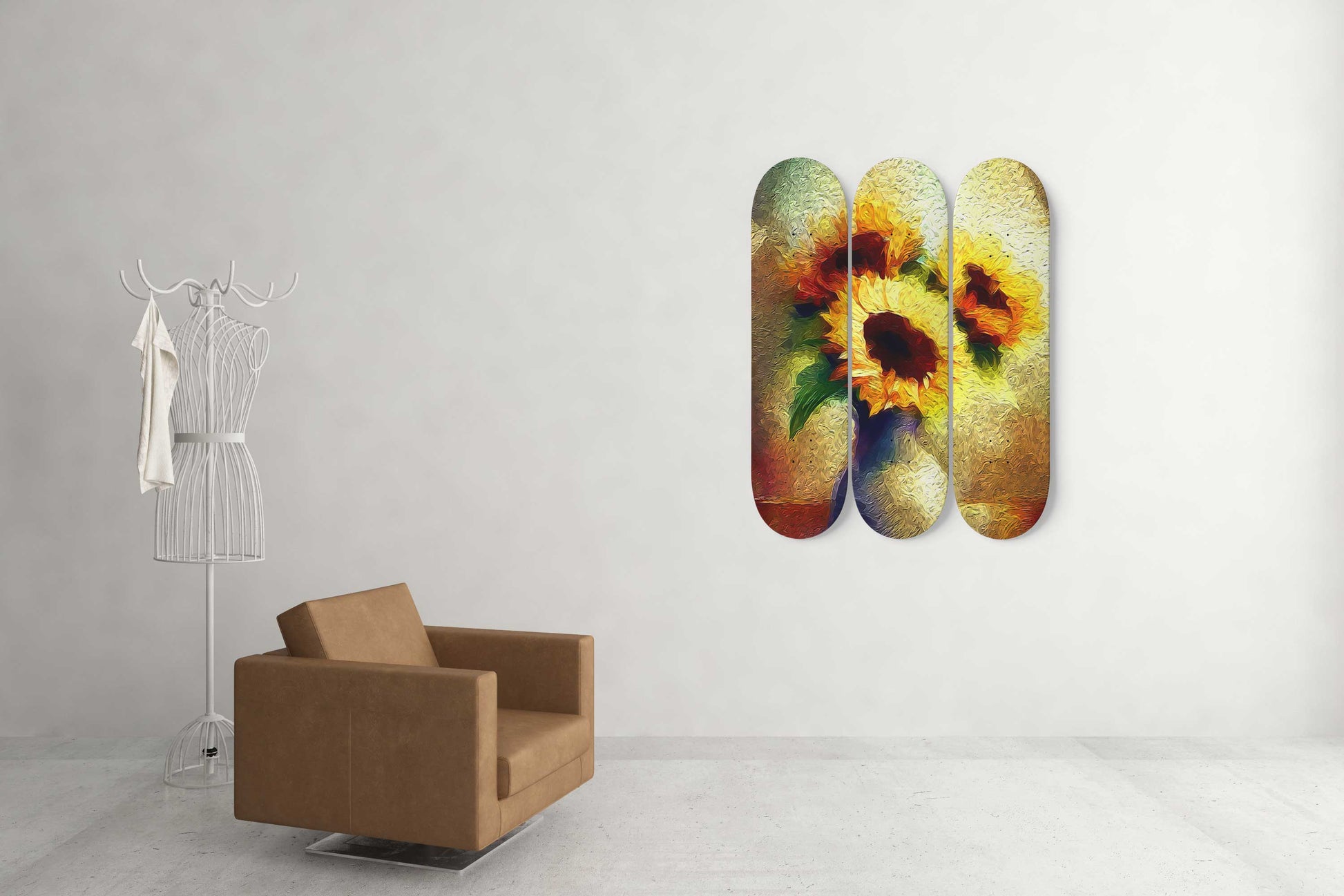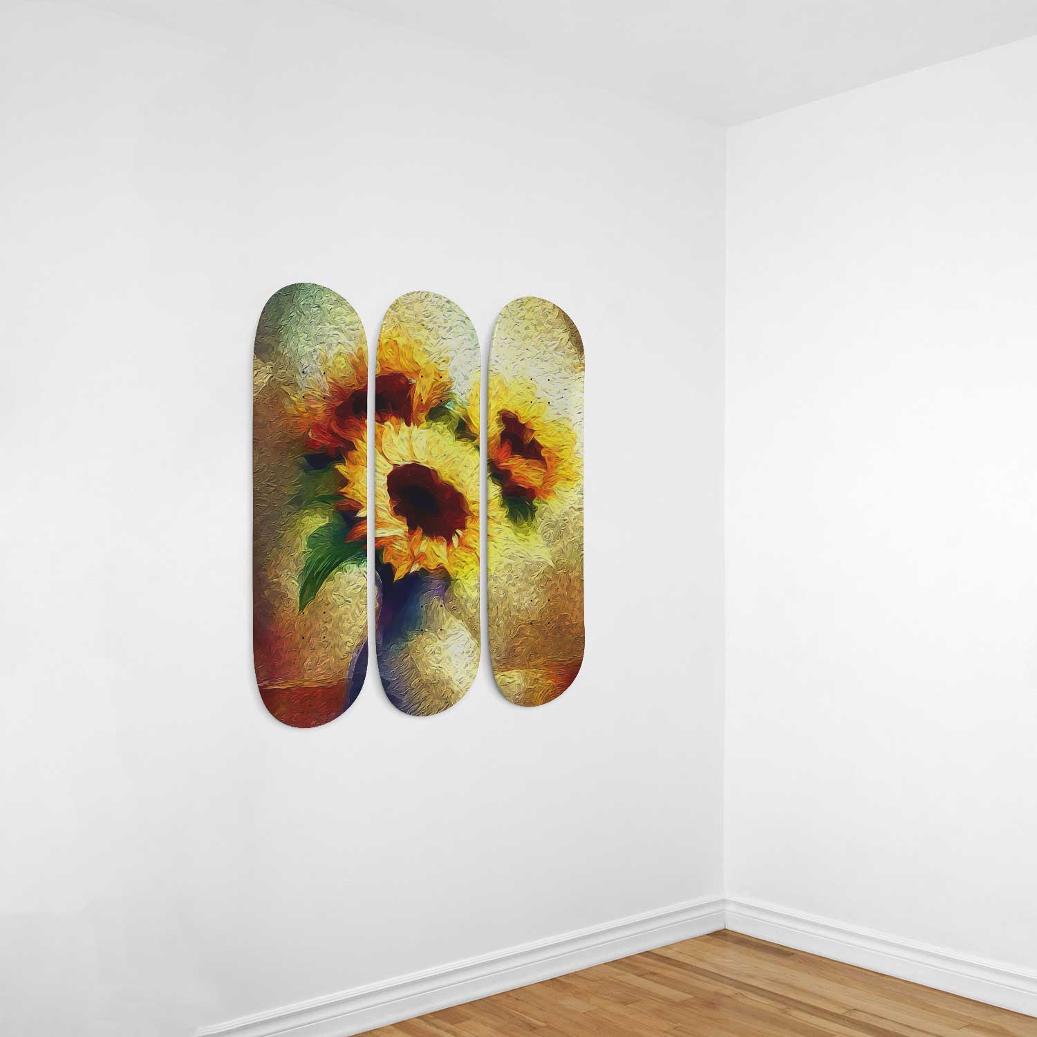 Van Gogh Three Sunflowers in a Vase 3-Deck Skateboard Wall Art