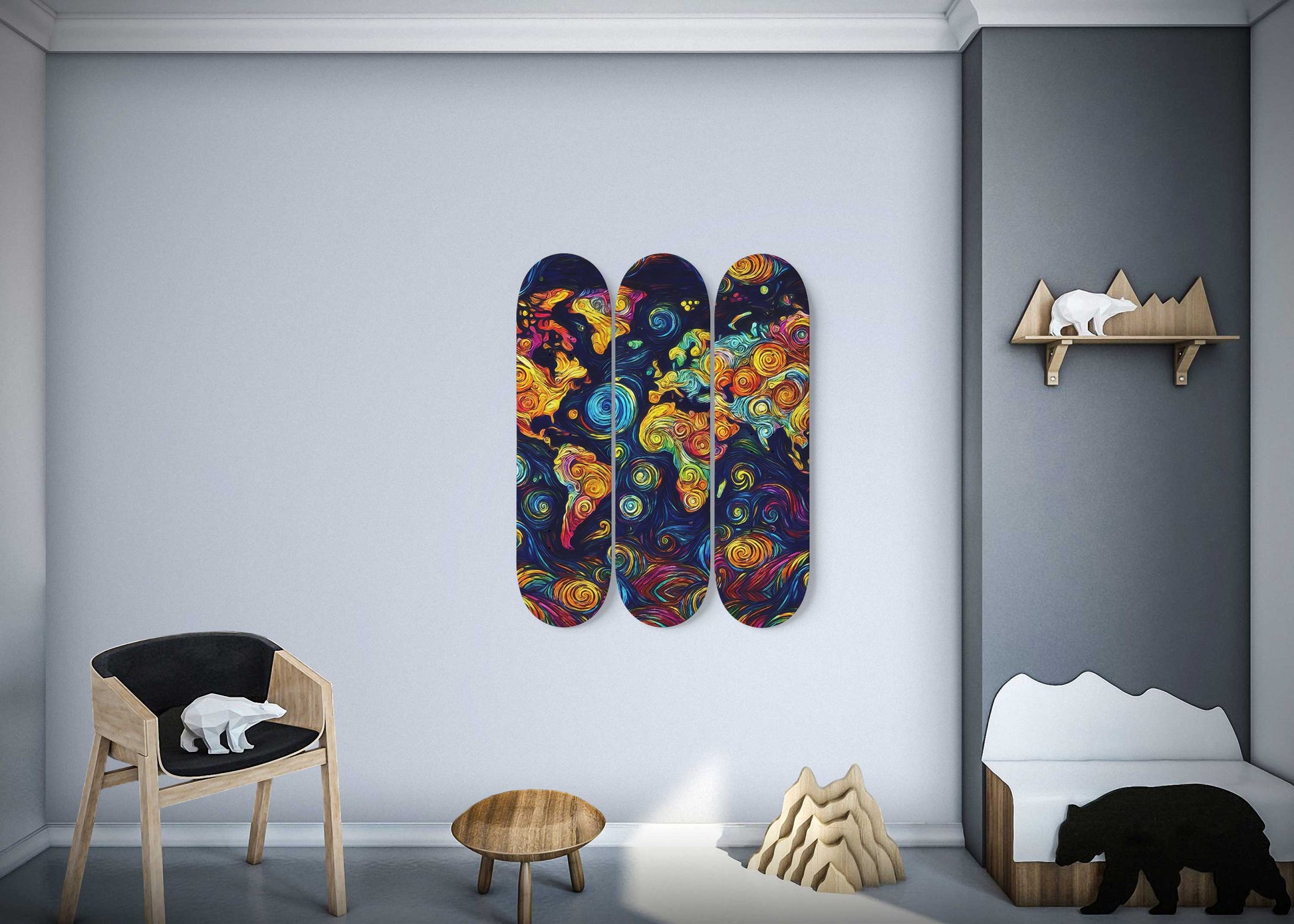 Van Gogh World Map 3-Deck Skateboard Wall Art: Travel with Art
