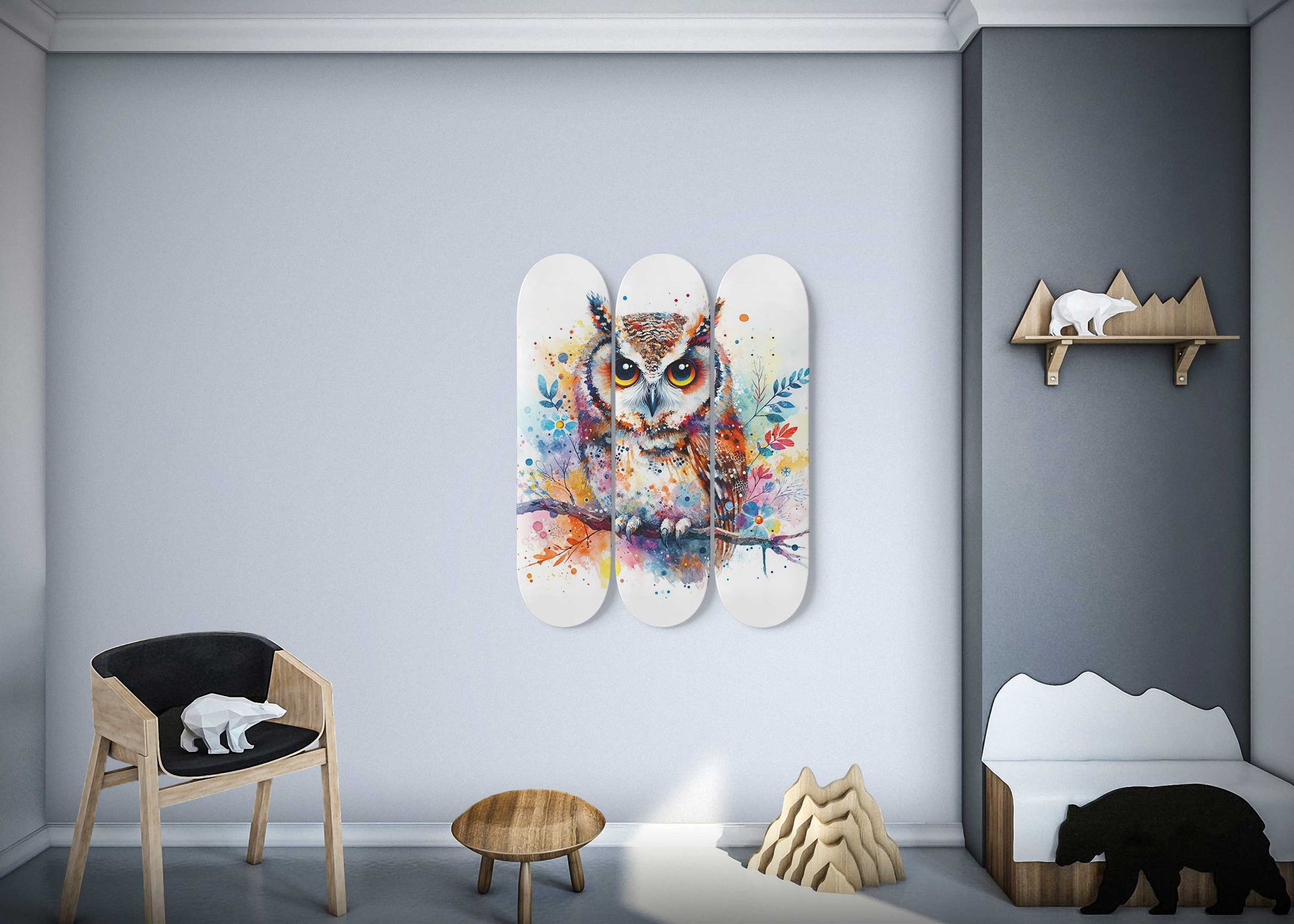 Owl #1.0 3-Deck Skateboard Wall Art
