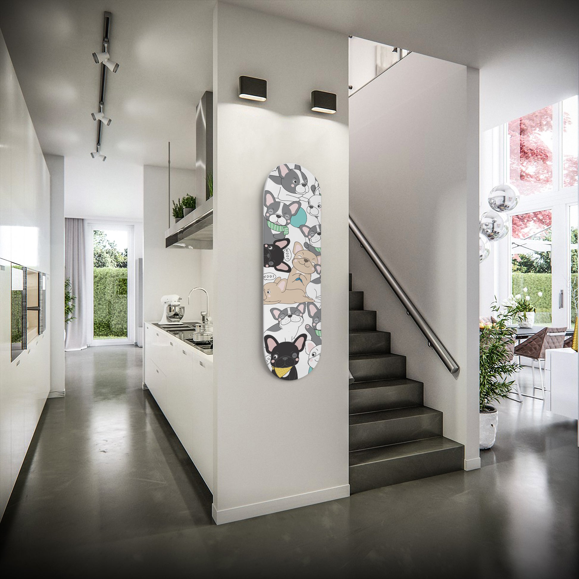 This high-quality 7-ply 100% maple skateboard is the perfect statement piece for any home or office. Custom printed graphics, one-of-a-kind art piece.