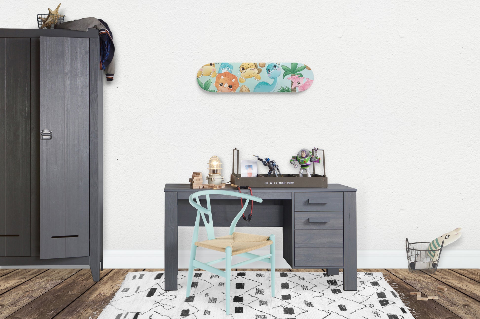 Cutesy Dinosaur Friends - Skateboard Wall Art