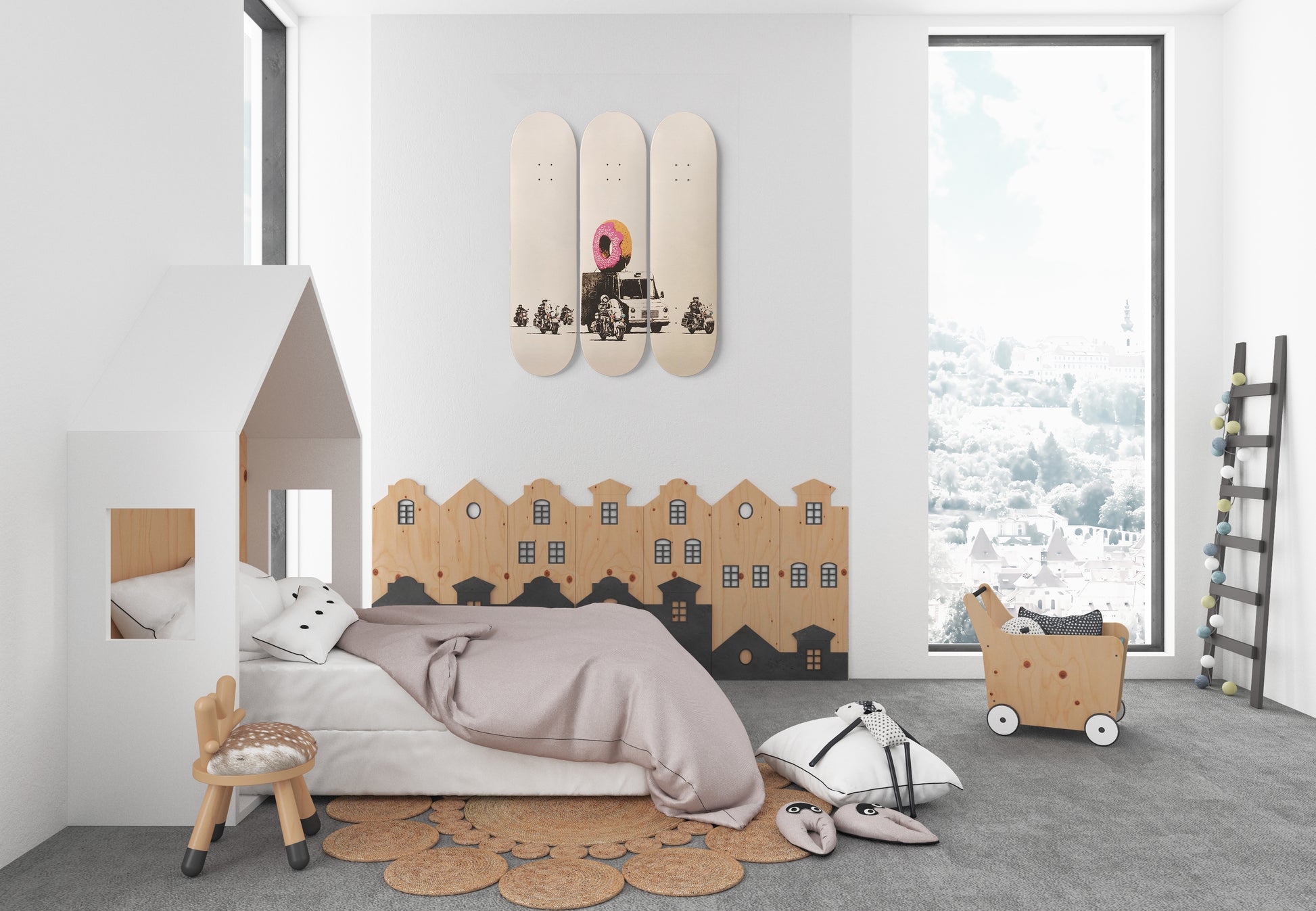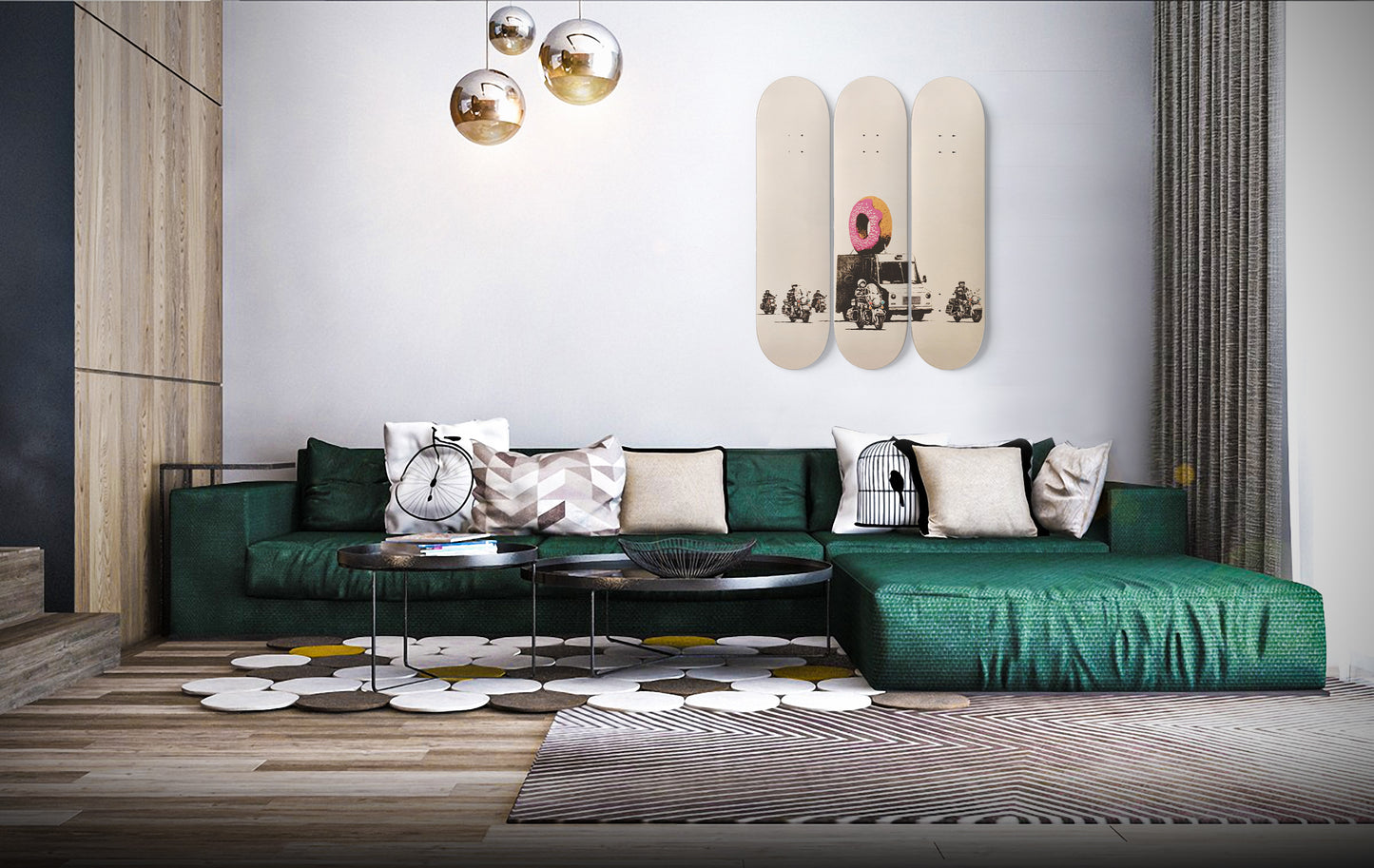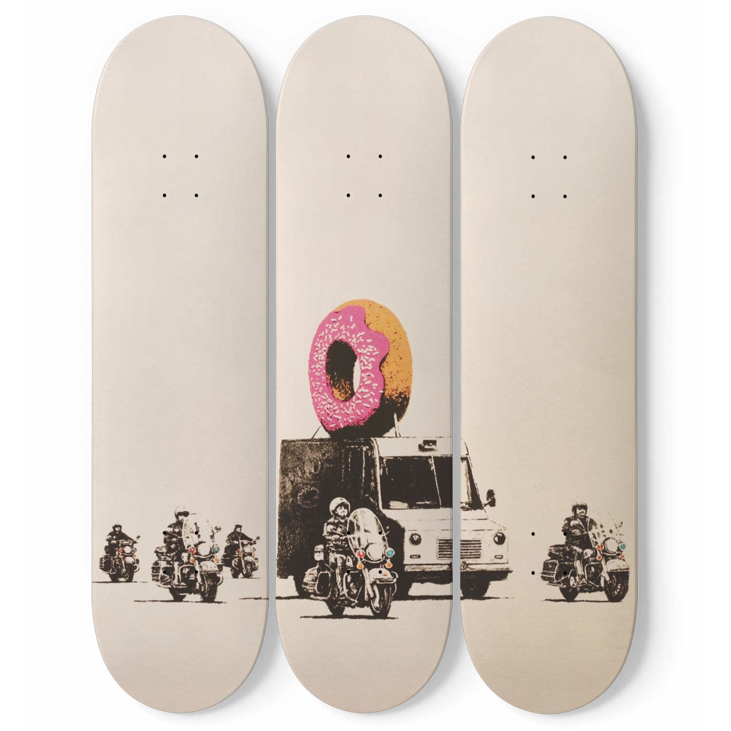Banksy Donut Truck | 3 - Piece Skateboard Wall Art, Banksy Print Home Decor, Home Office Maple Wood Skate Deck Art