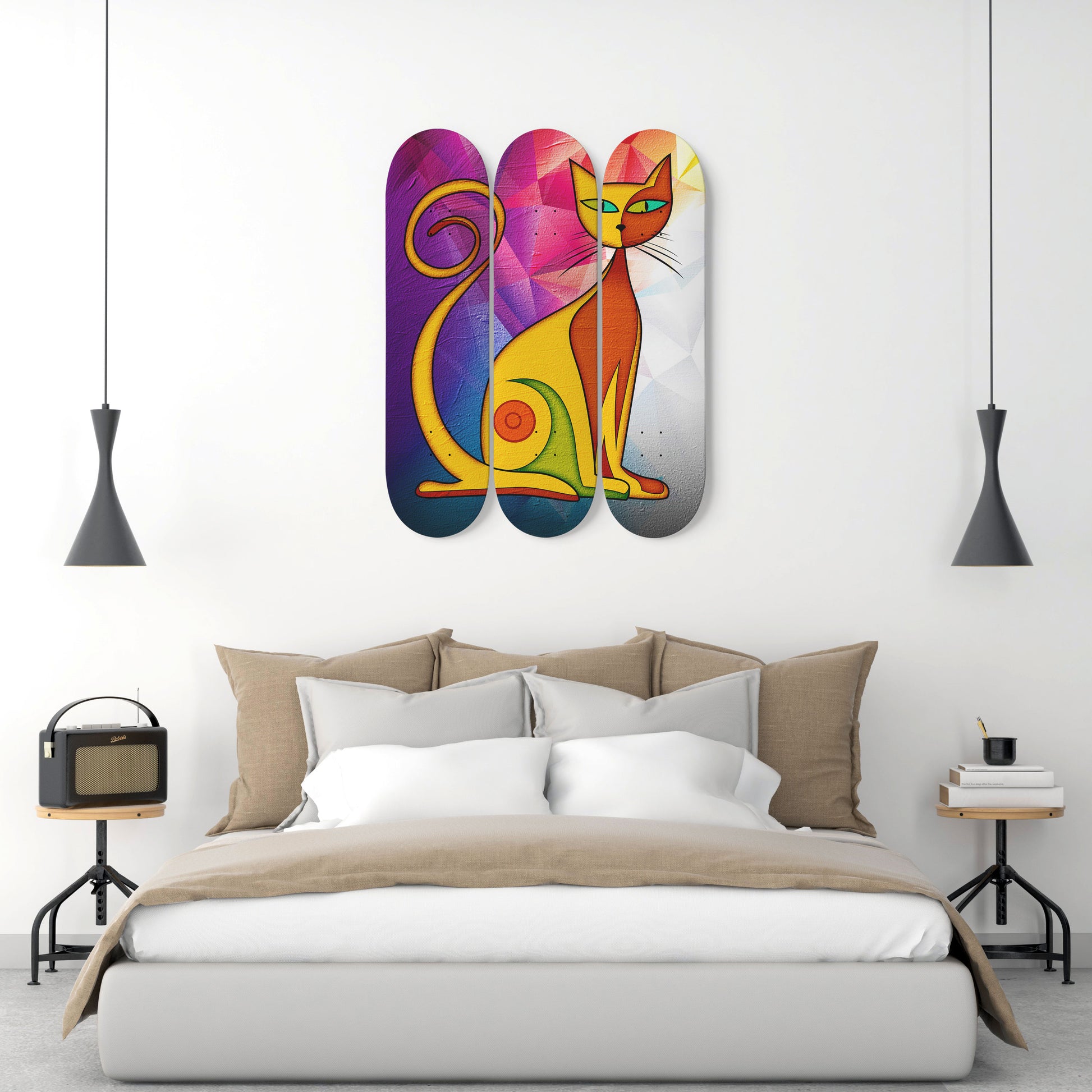 Elegant Cat #5.0 3-Deck Skateboard Wall Art:Adorbale, Colorful Design