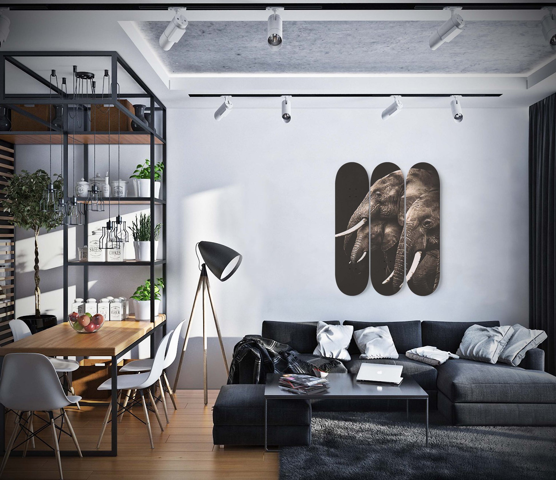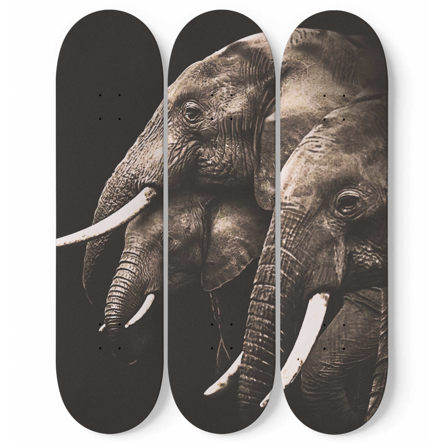 Elephant Family Wall Art Print | 3 - Piece Skate Deck Art, Elephant Pop Art Wall Art, Living Room Wall Hanging Decor