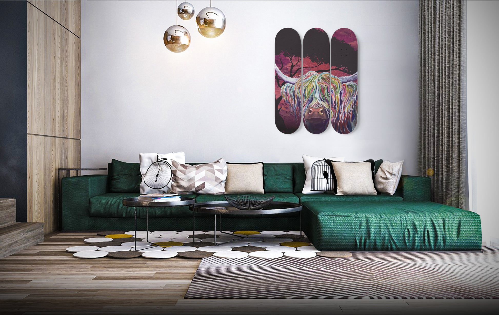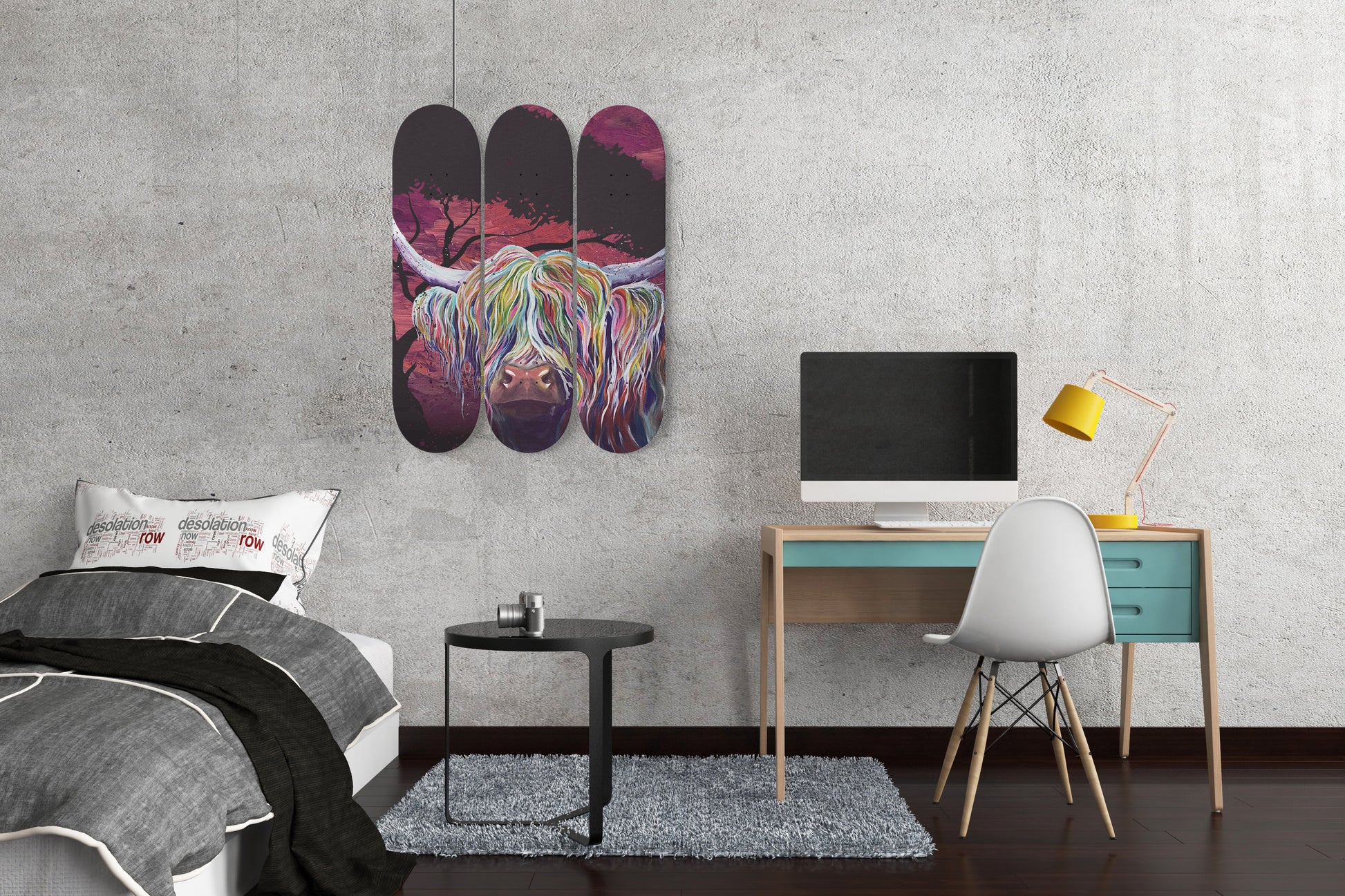 Funky Abstract Colourful Highland Cow | 3 - Piece Skateboard Wall Art, Highland Cow Print, Custom Printed Wall Art
