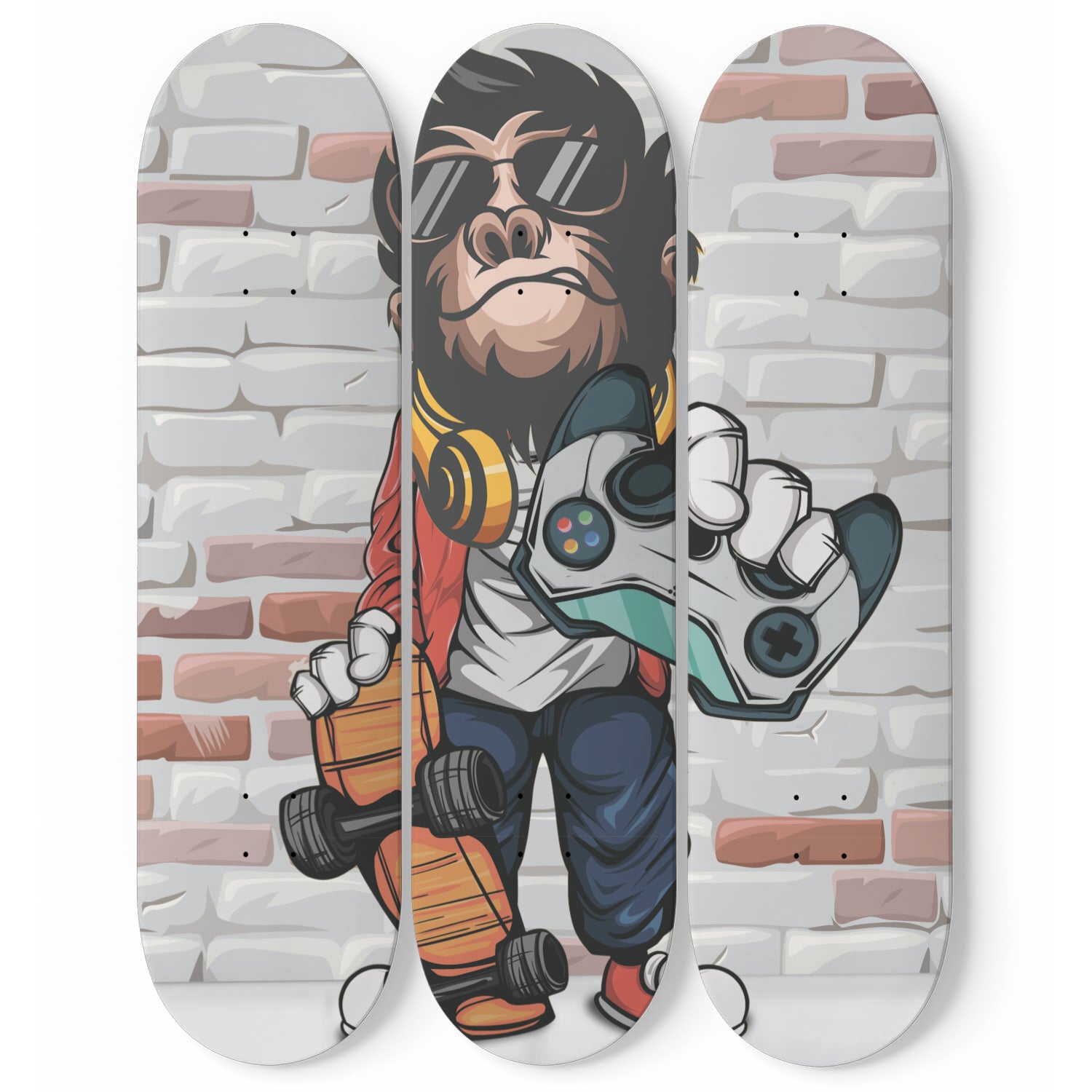 Geek Monkey Inspired - 'Monkey Gamer' Art - 3 piece - Skateboard Wall Art