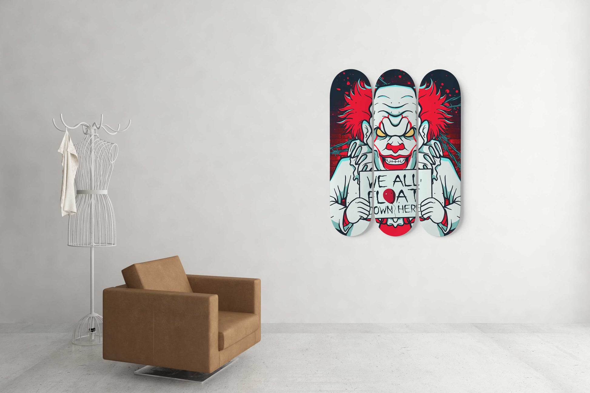 Halloween Pennywise 3 Deck Skateboard Wall Art: Creepy Clown Home Decor