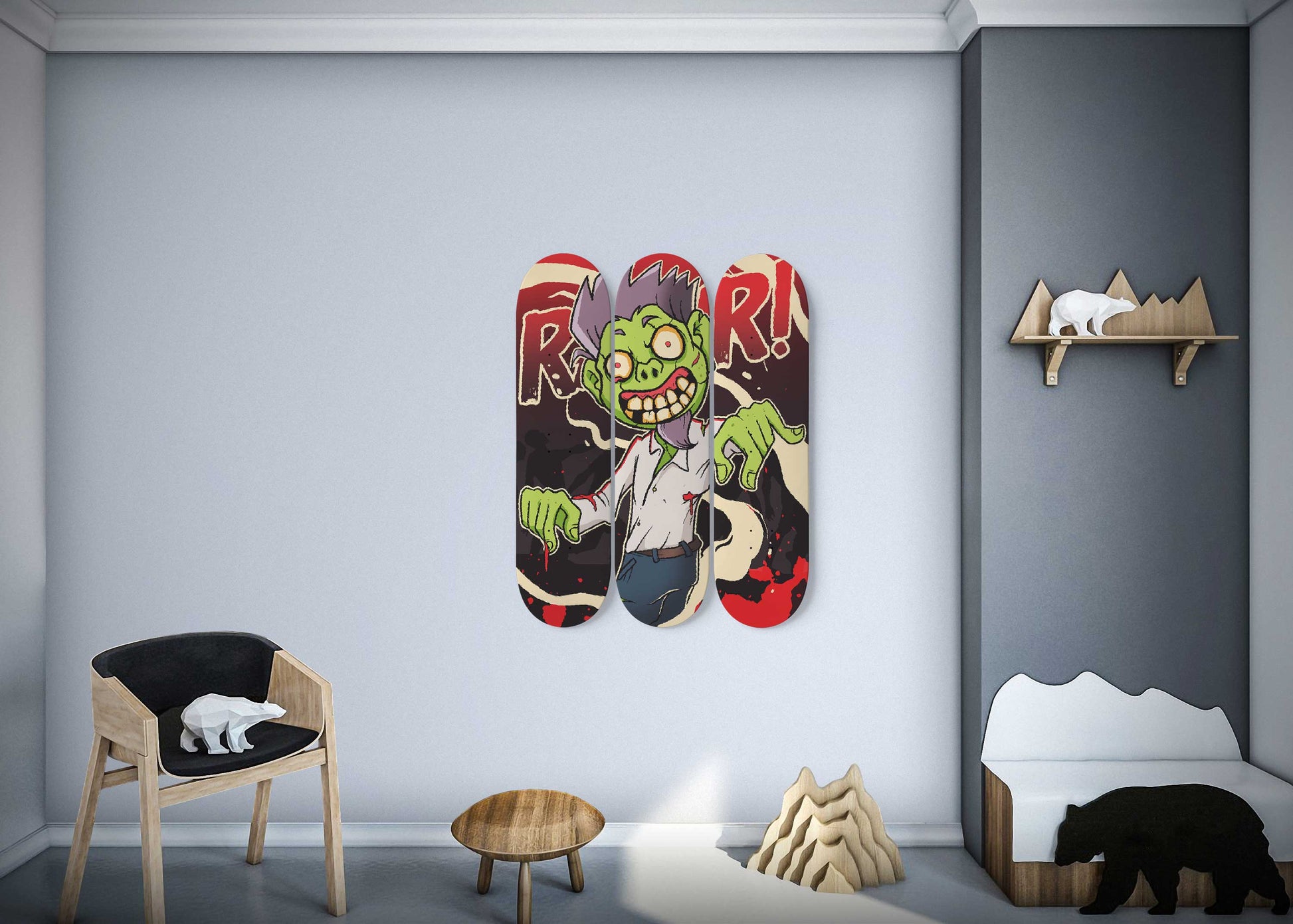 Halloween Zombie 3 Deck Skateboard Wall Art: Undead Home Decor