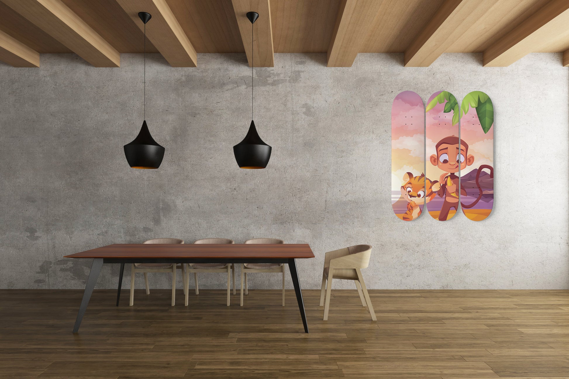 Islanders Cartoon inspired - 'Monkey & Tiger' - 3 piece - Skateboard Wall Art