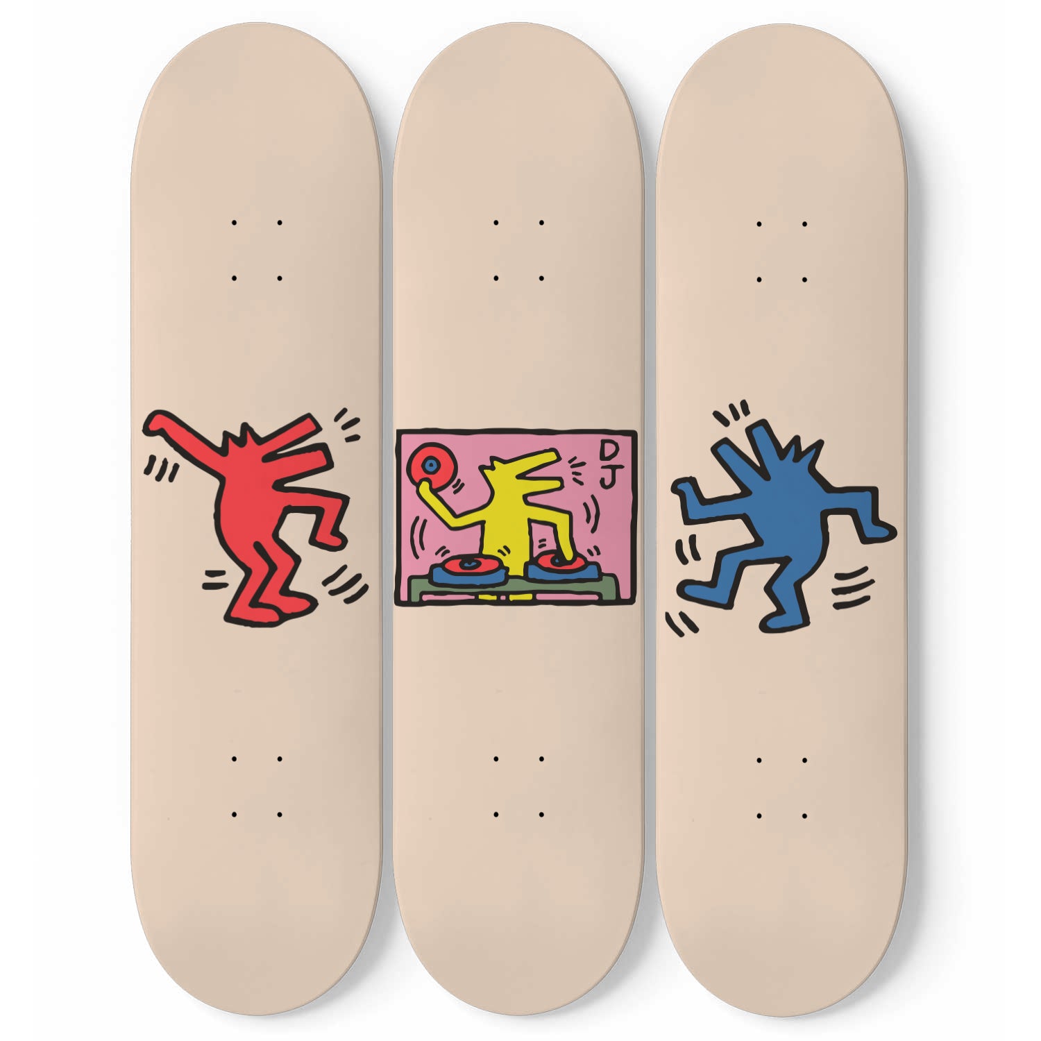 Keith Haring Dog Inspired Print | 3 - Set Skateboard Wall Art, DJ And Dancing Dog Keith Haring Art Skate Deck Art Wall Decor