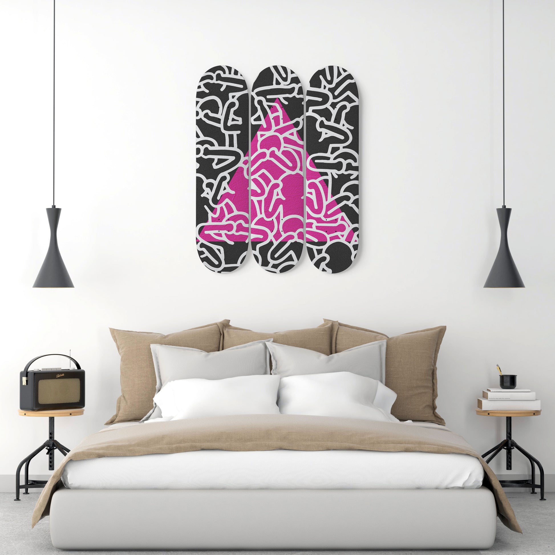 Unleash the vibrant energy of Keith Haring's iconic artwork with our "Silence" 3 Deck Skateboard Wall Art set. This visually striking, handcrafted piece beautifully blends urban street art and skateboard culture into a compelling and dynamic focal point for your space.