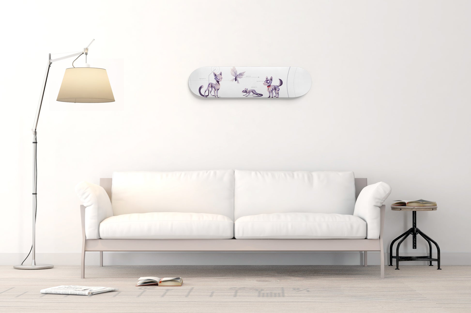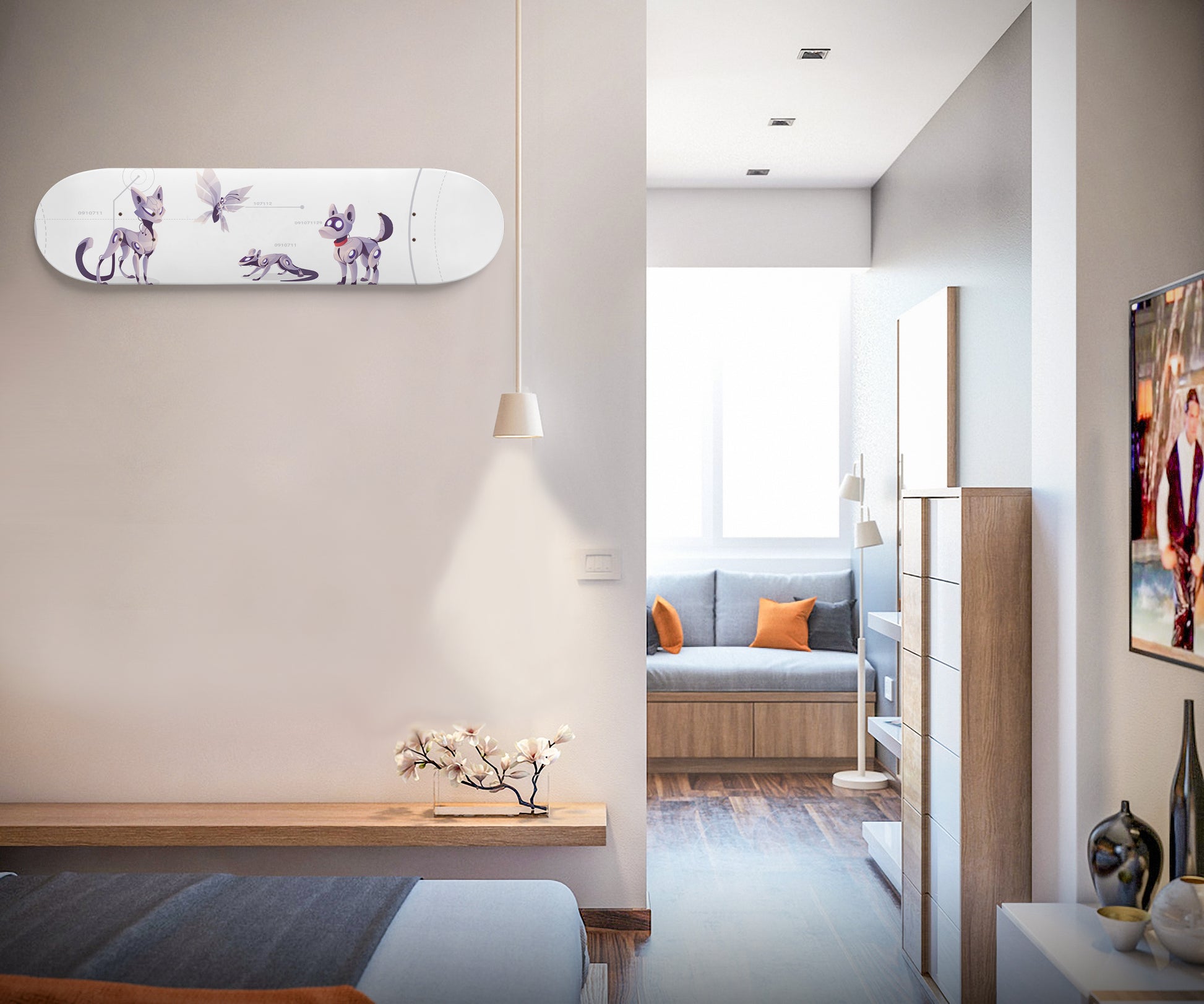 This high-quality 7-ply 100% maple skateboard is the perfect statement piece for any home or office. Custom printed graphics, one-of-a-kind art piece.