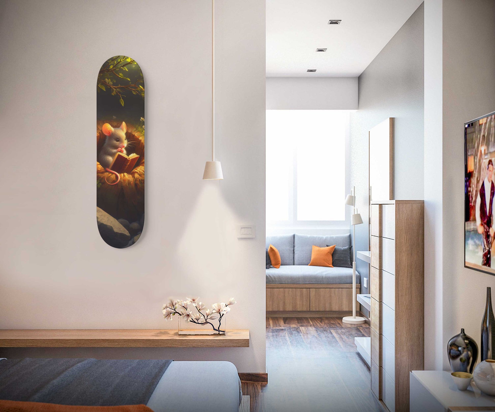 Mouse Reading Book #5.0 1-Deck Skateboard Wall Art