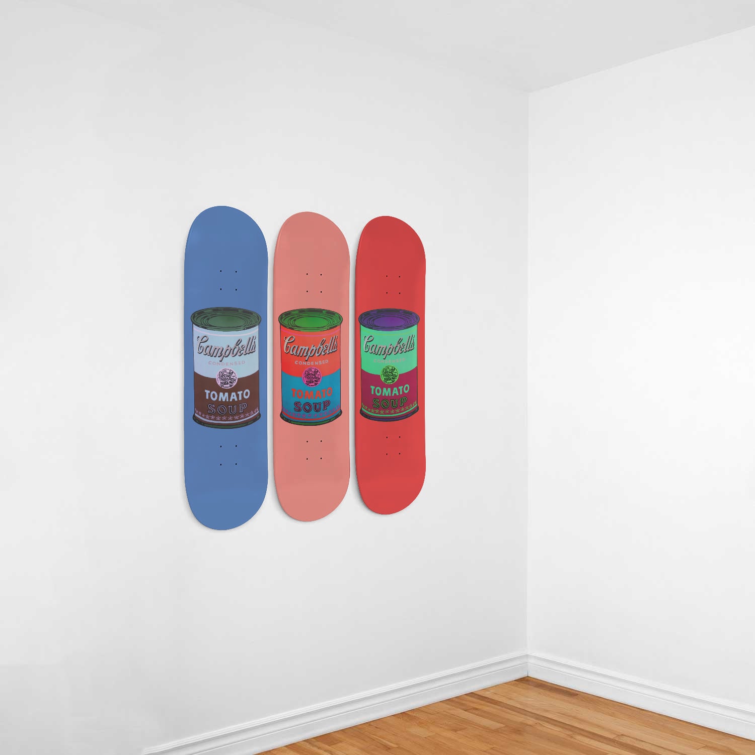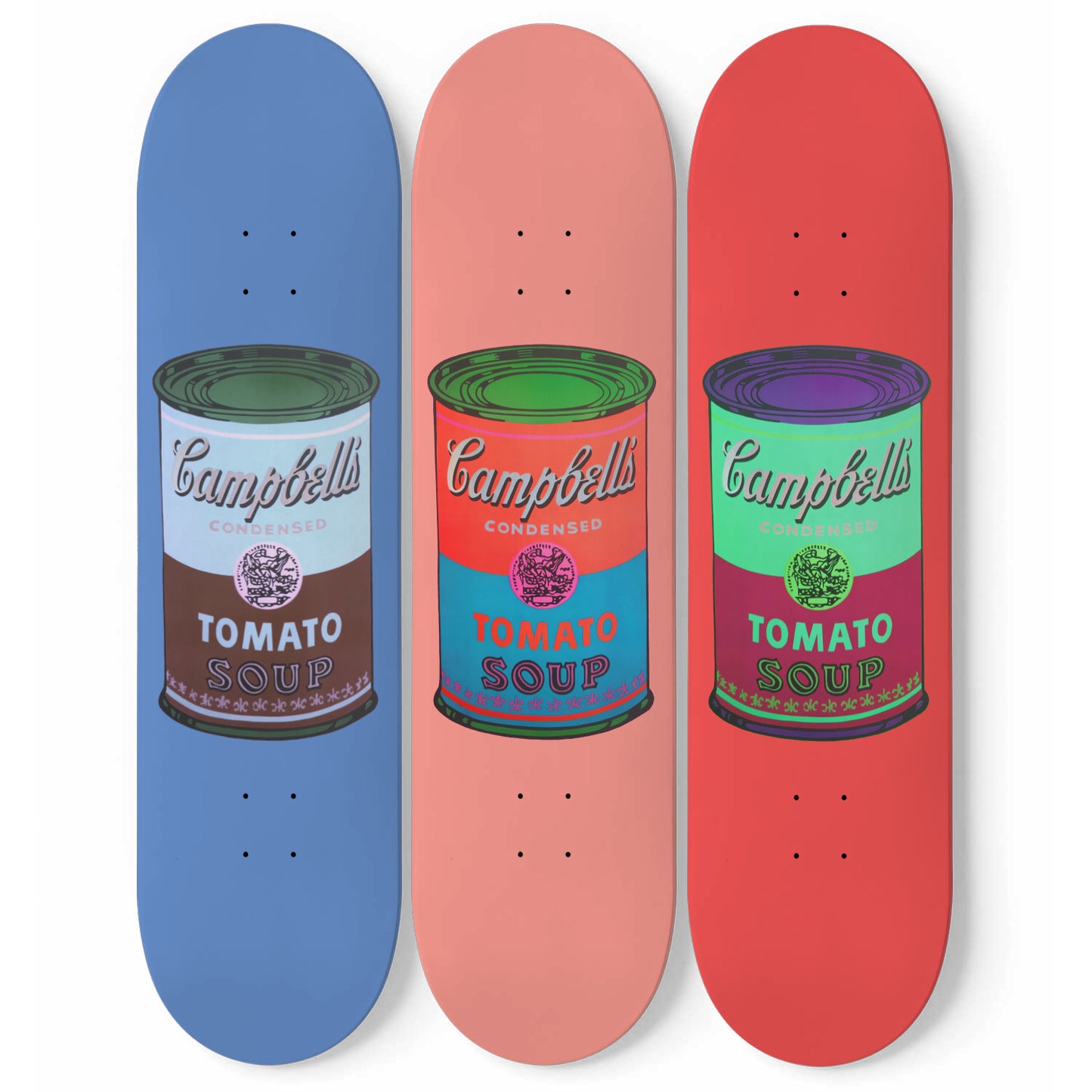 Pastel Coloured Retro Campbell Soup | Andy Warhol Inspired 3-piece Skateboard Wall Art