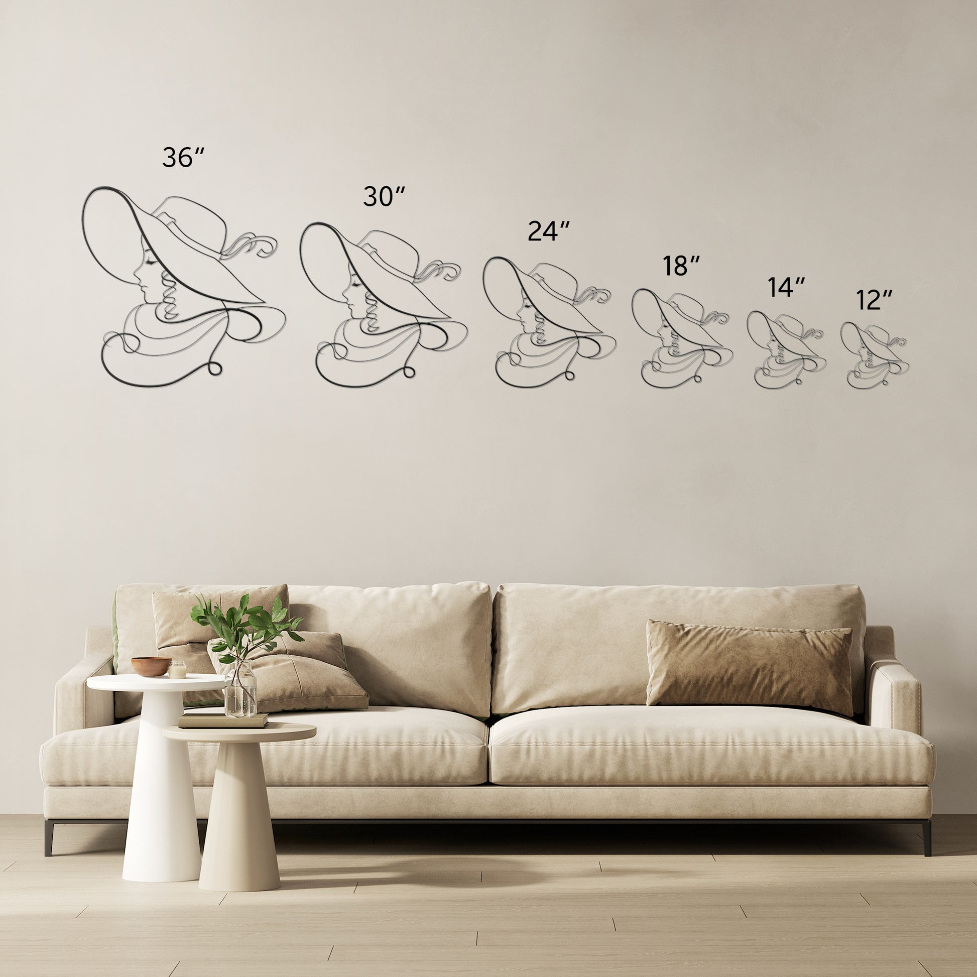 The "Pretty Lady in a Hat" Metal Wall Art portrays elegance and style, capturing the beauty of a woman adorned in a hat, making it a sophisticated and visually appealing addition to your living space.