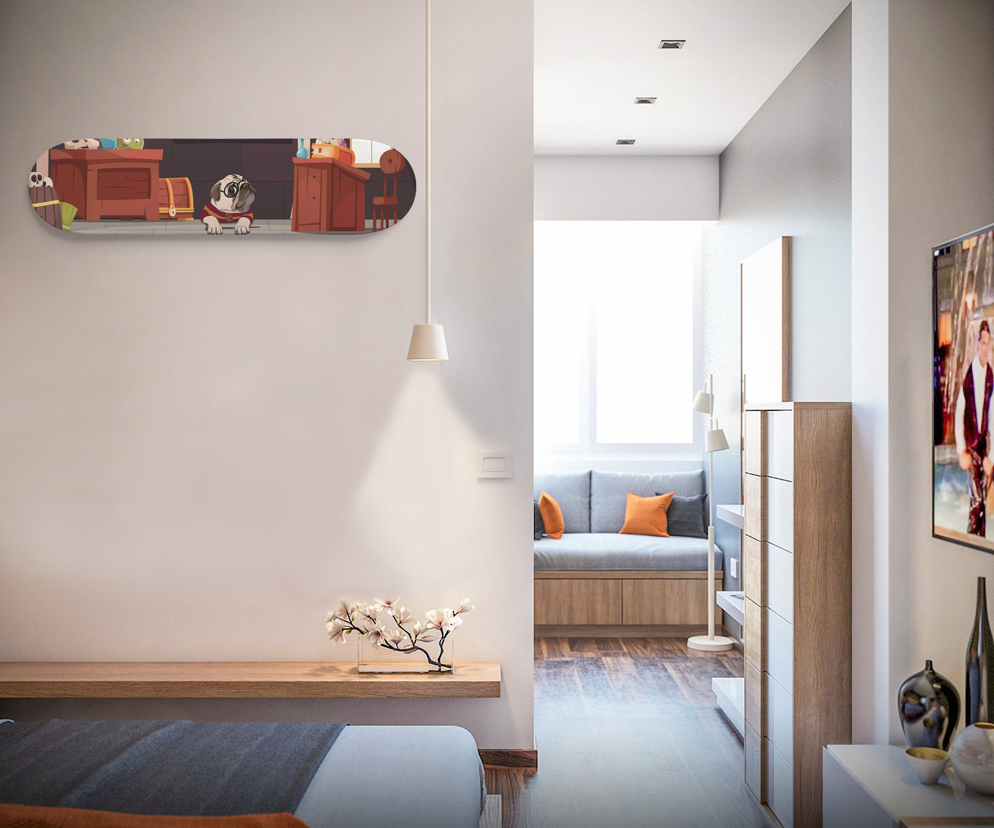 This high-quality 7-ply 100% maple skateboard is the perfect statement piece for any home or office. Custom printed graphics, one-of-a-kind art piece.