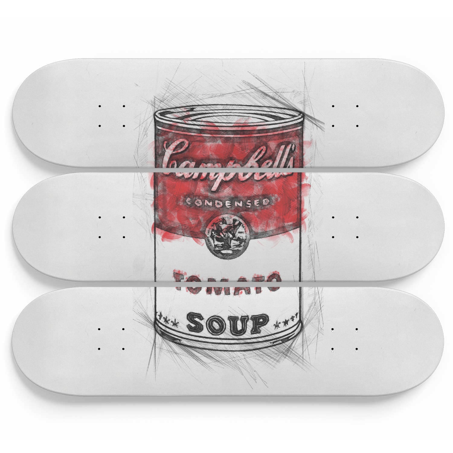 Retro Funky Campbell Soup Art, Andy Warhol Inspired 3-piece Skateboard Wall Art