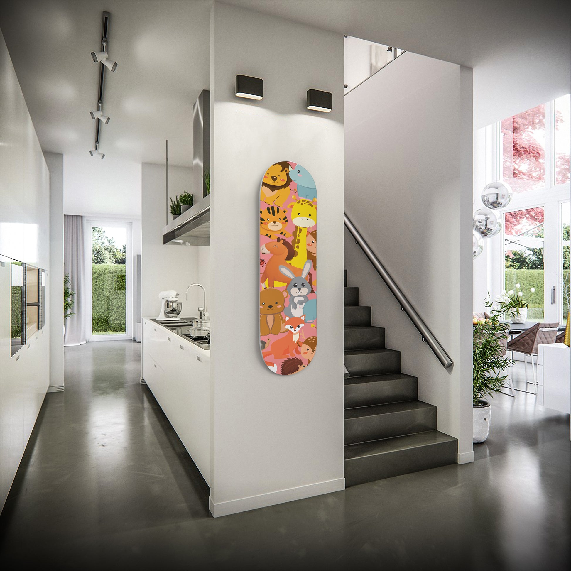 This high-quality 7-ply 100% maple skateboard is the perfect statement piece for any home or office. Custom printed graphics, one-of-a-kind art piece.