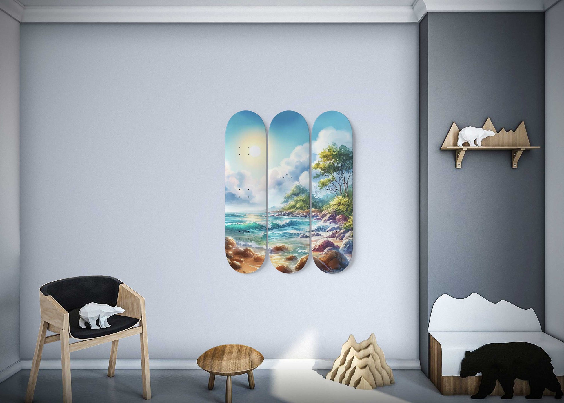 Seashore 3-Deck Skateboard Wall Art