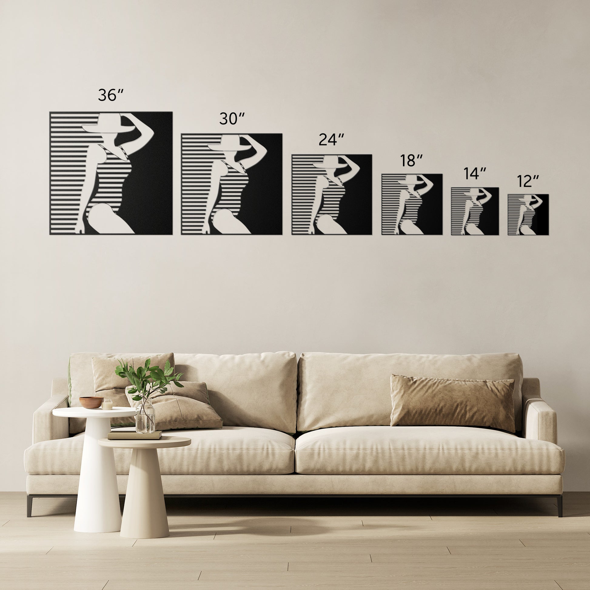 Introduce allure and style with our Sexy Lady in a Striped Swimsuit Metal Wall Art. This art piece captures the essence of beauty and confidence, creating a captivating focal point for your home decor. Embrace the elegance and sophistication it brings to your walls, adding a touch of charm and personality to any space.