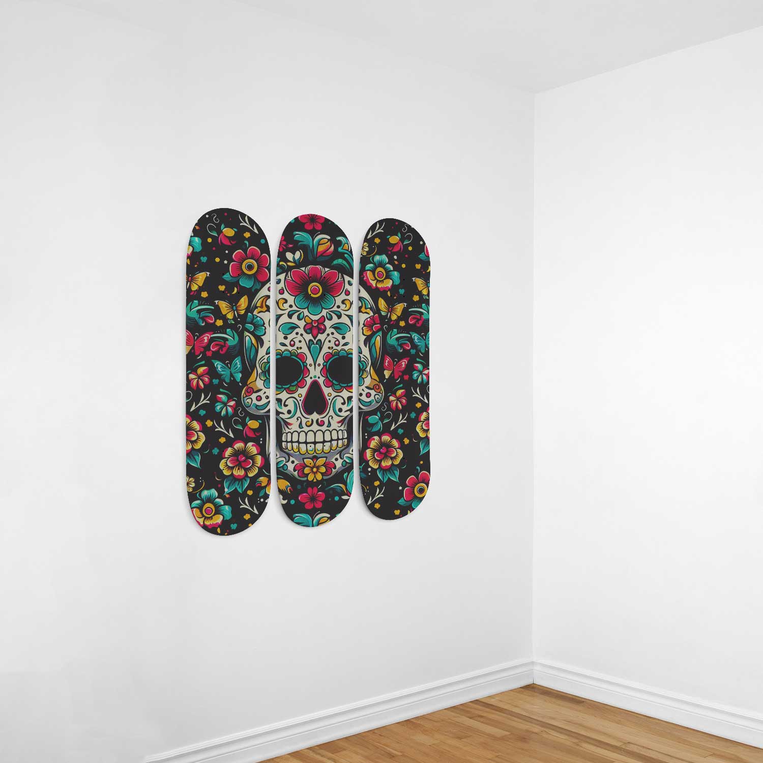 Sugar Skull #3.0 3-Deck Skateboard Wall Art: Dia de los Muertos Delight