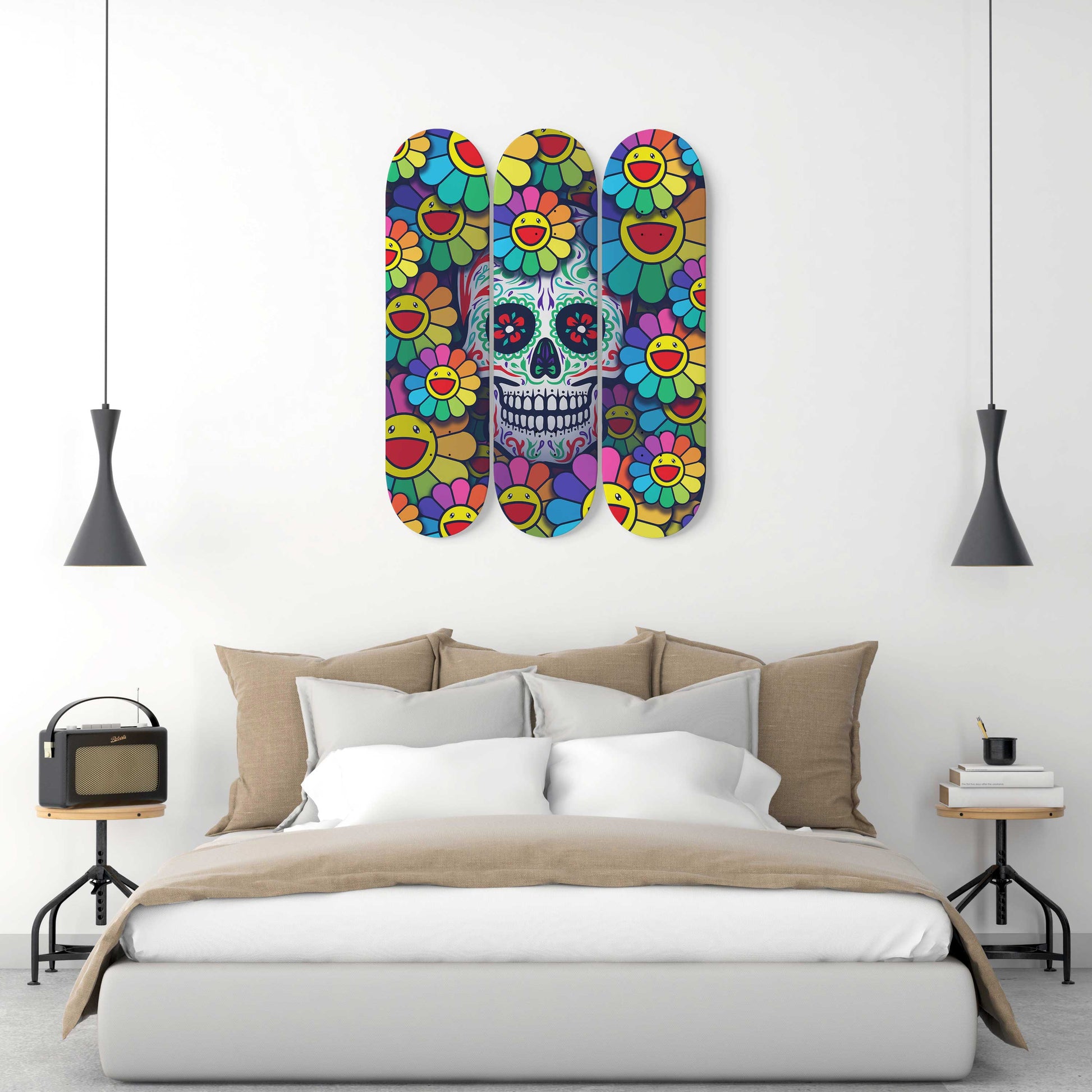 Sugar Skull #9.0 3-Deck Skateboard Wall Art: Dia de los Muertos Delight
