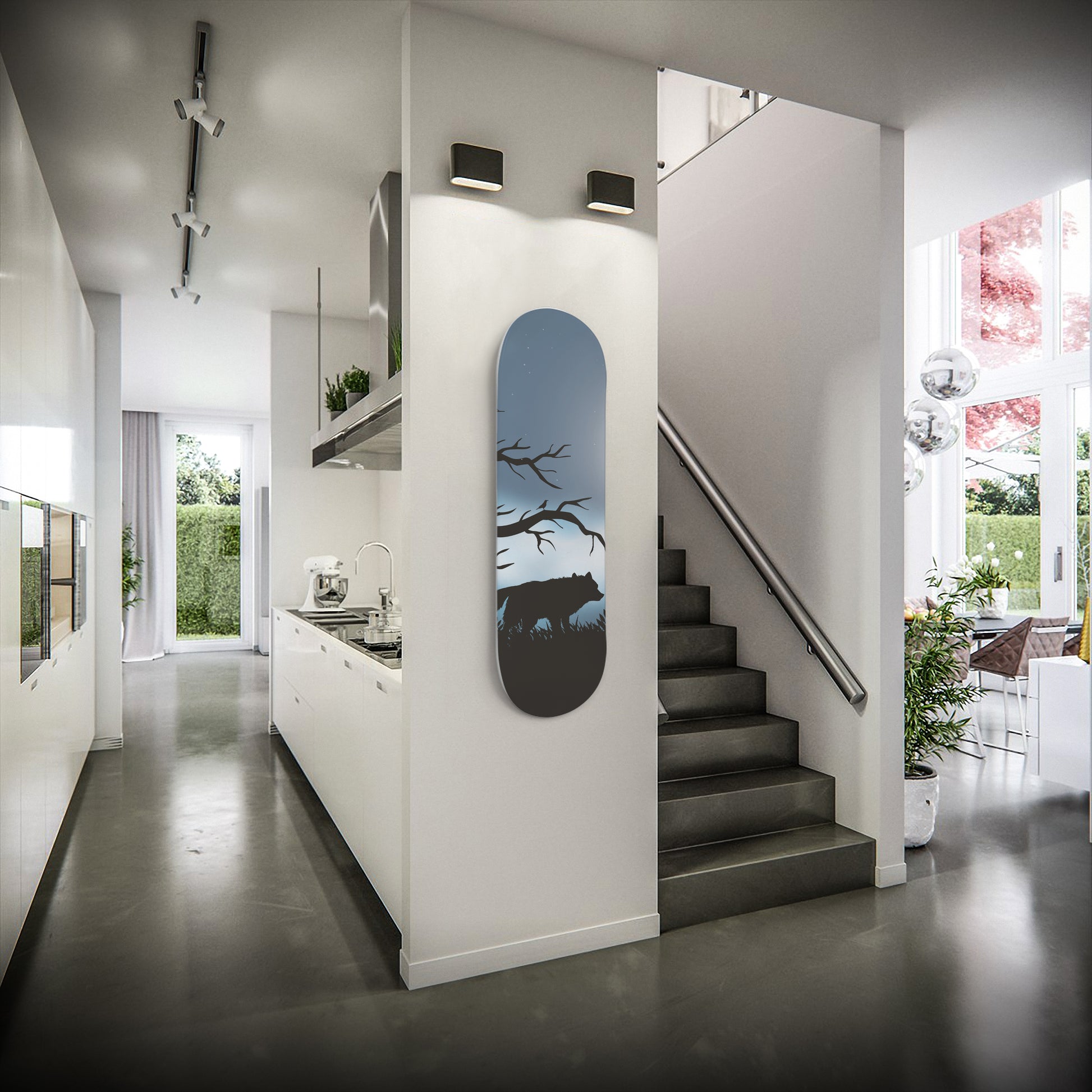 Wolf Howling at Night - Skateboard Wall Art